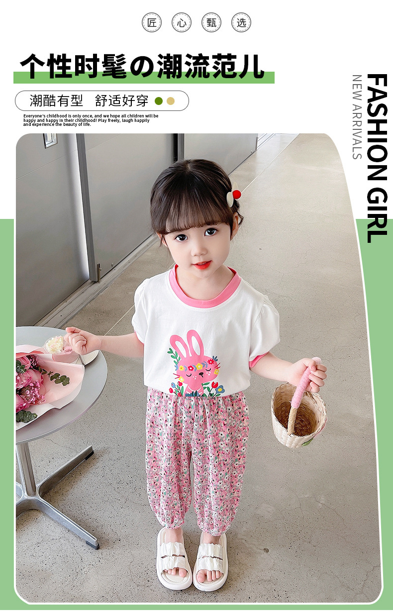 2025 여름 새 여자 만화 반팔 티셔츠 귀여운 프린트 외국 스타일 탑 격자 무늬 바지 한국어 버전