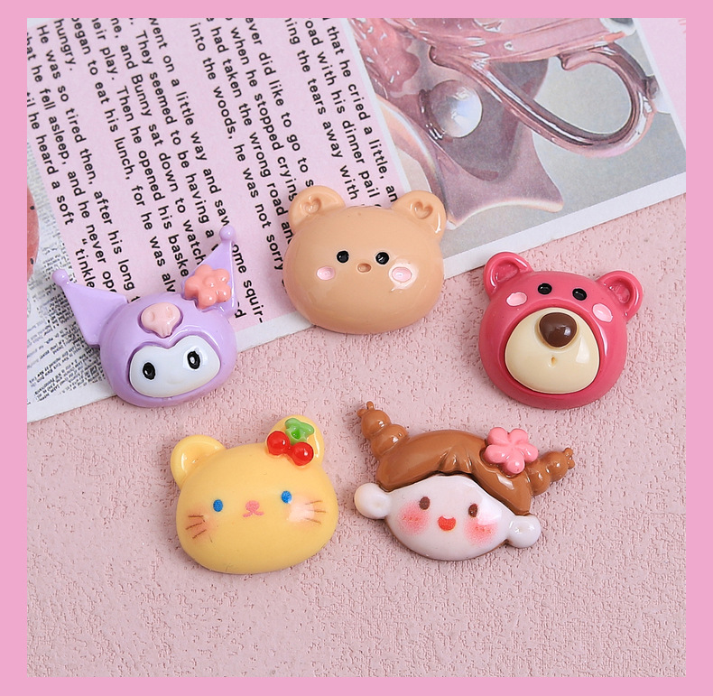 귀여운 곰 머리 만화 수제 창조적 인 DIY 보석 액세서리 크림 접착제 수지 작은 액세서리 구멍 신발 소재