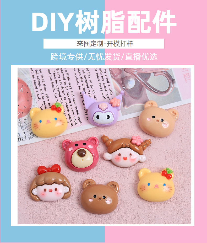 귀여운 곰 머리 만화 수제 창조적 인 DIY 보석 액세서리 크림 접착제 수지 작은 액세서리 구멍 신발 소재스토어 가기