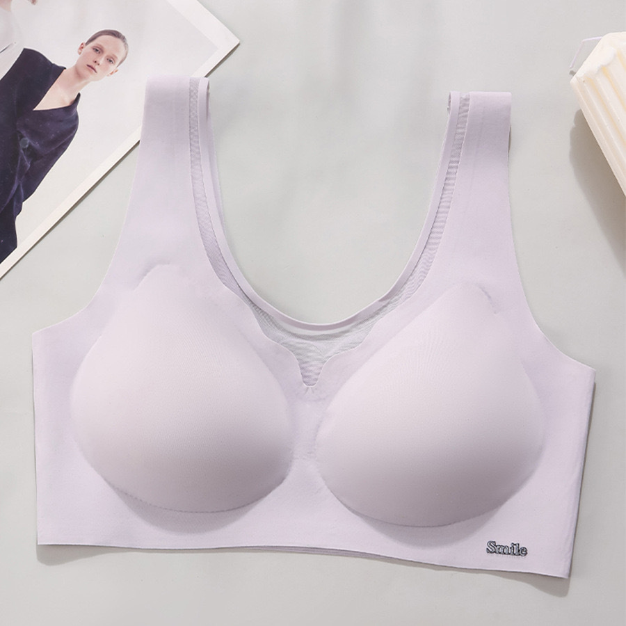 여성용 여름 얇은 대형 속옷, 편안하고 흔적이 없는 큰 가슴, 작은 조끼 스타일, 와이어 프리 스포츠 유방 수축 브라스토어 가기