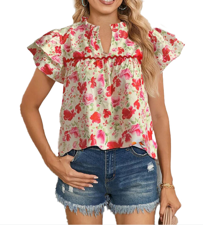 2025 아마존 새로운 여성 여성 Pleated V 넥 풀오버 탑 러플 셔츠스토어 가기