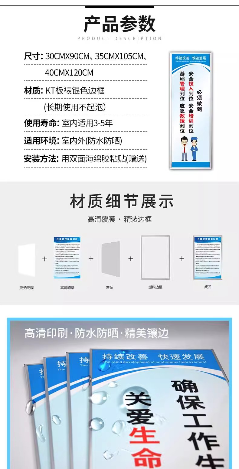 안전 생산 슬로건 관리 규칙 및 규정 간판 창고 기업 문화 포스터 맞춤형 kt 보드 프레임