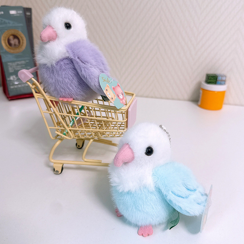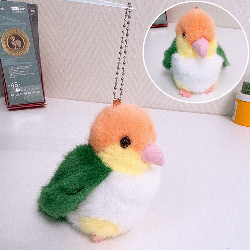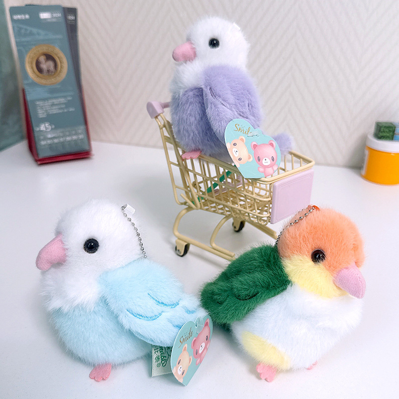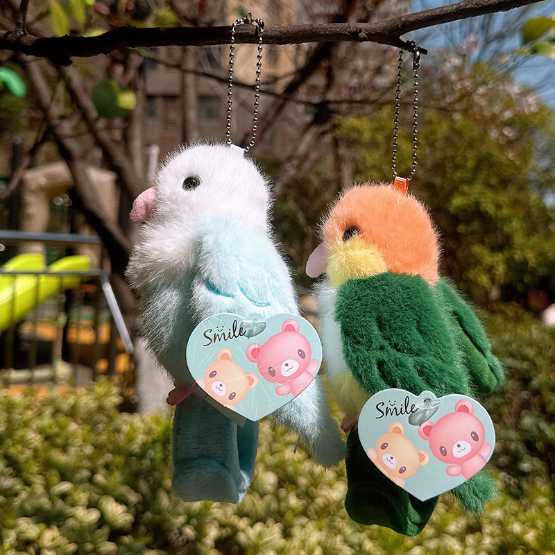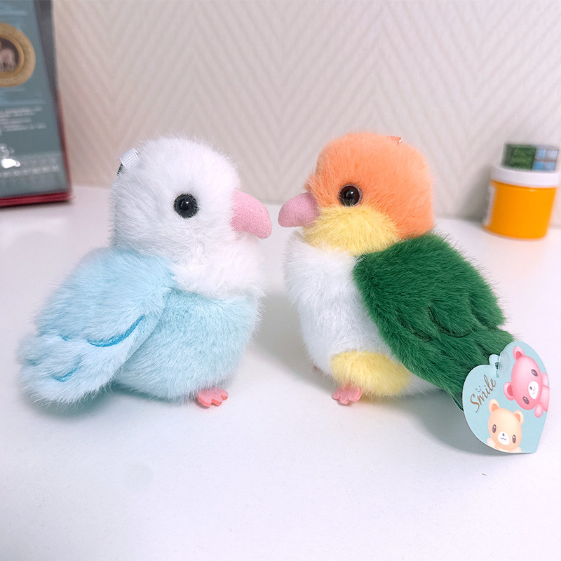 Rabiti 시뮬레이션 앵무새 플러시 펜던트 어린이 장난감 새 스냅 링 가방 펜던트 인형 대화 형 도매스토어 가기