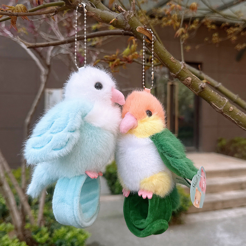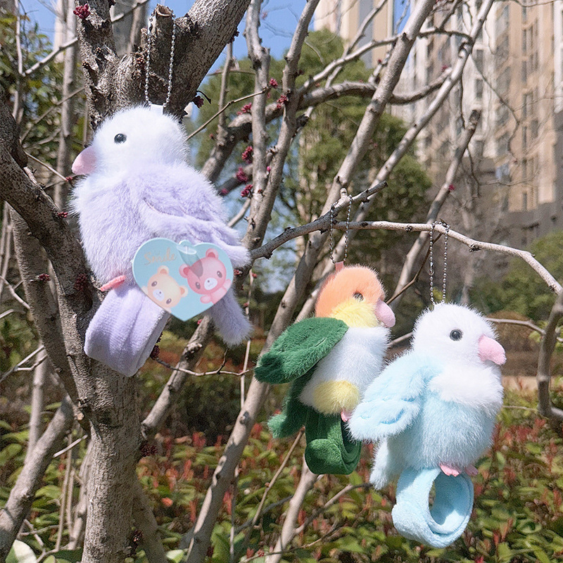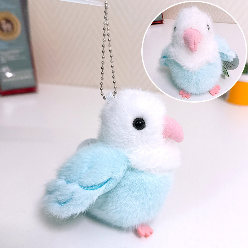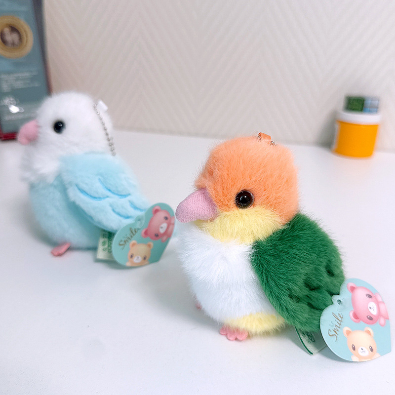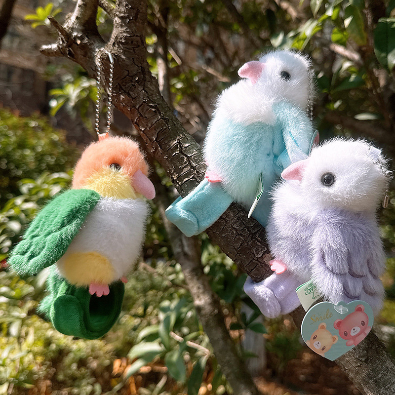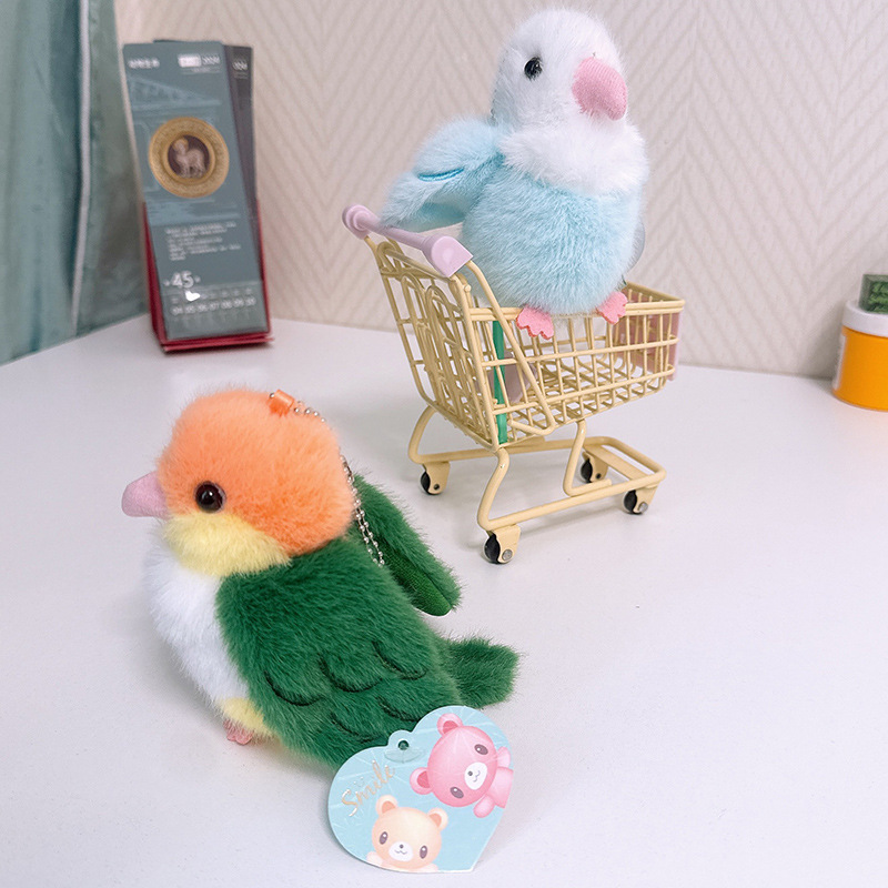 Rabiti 시뮬레이션 앵무새 플러시 펜던트 어린이 장난감 새 스냅 링 가방 펜던트 인형 대화 형 도매스토어 가기