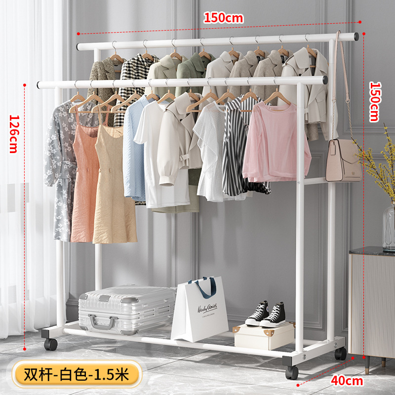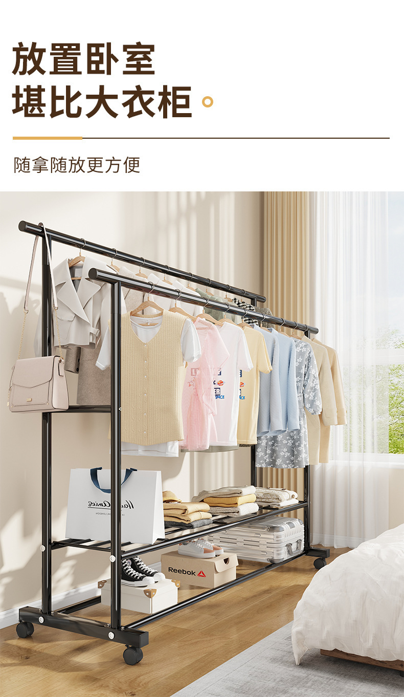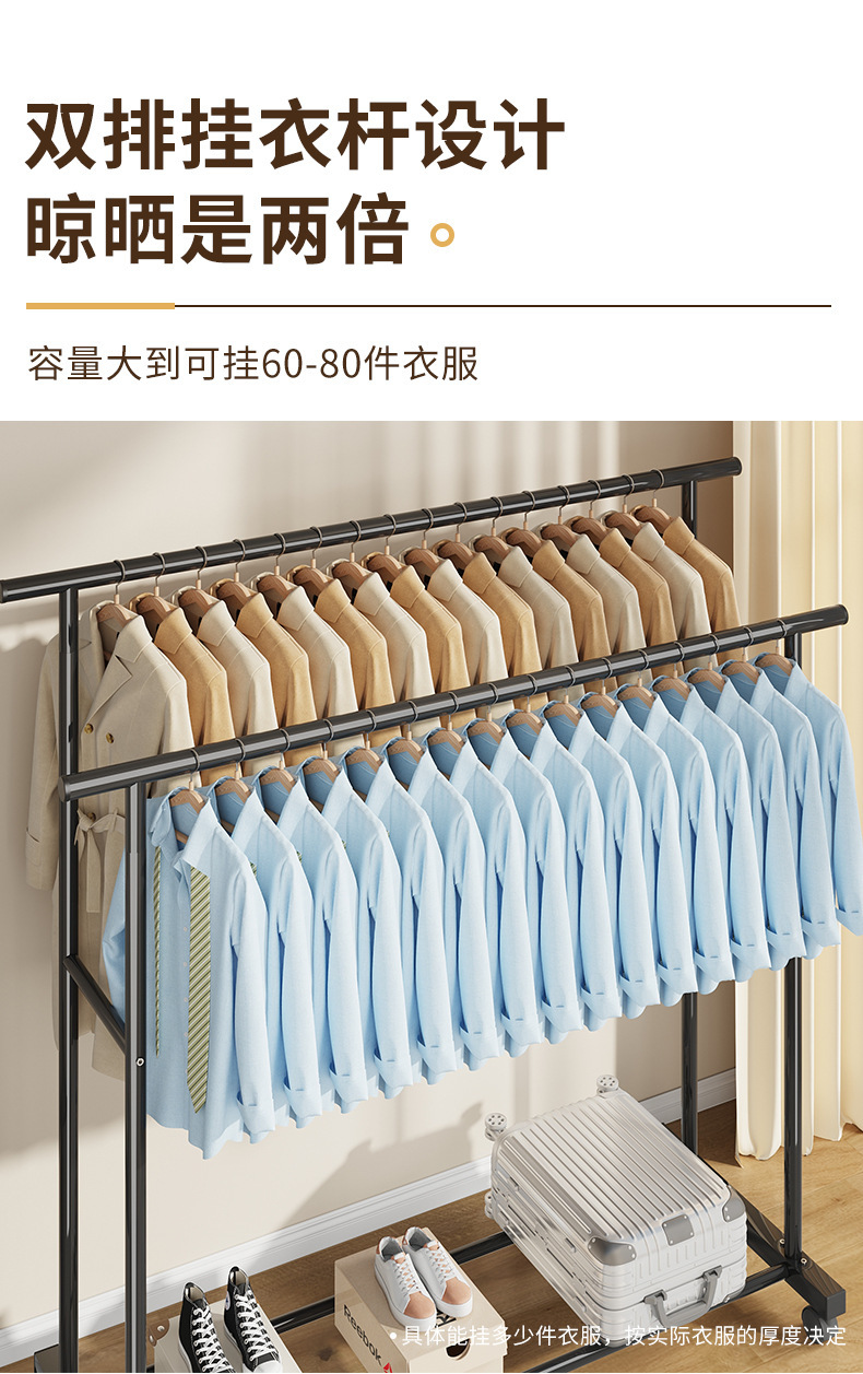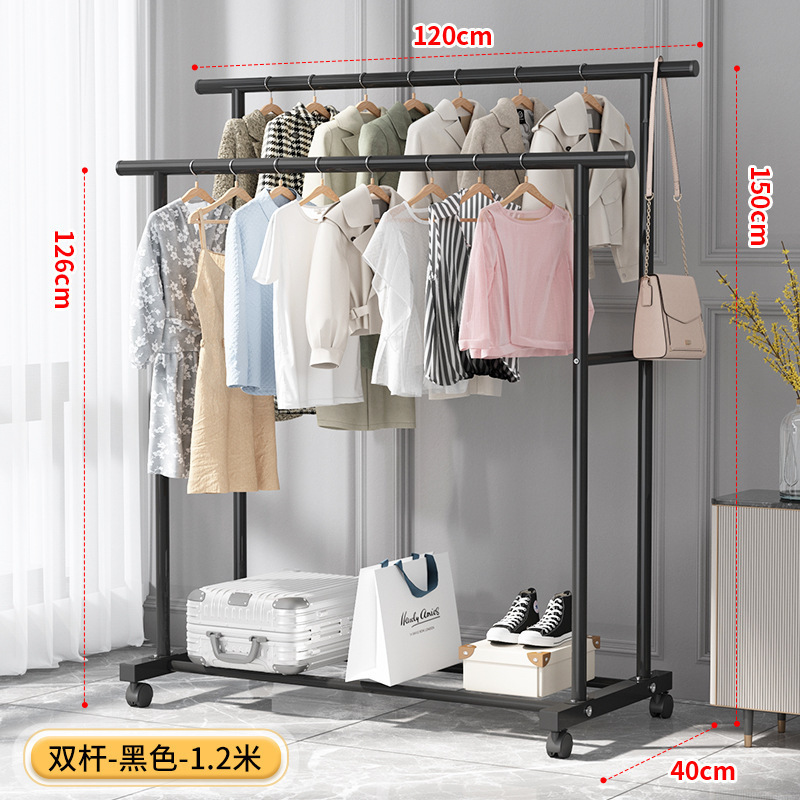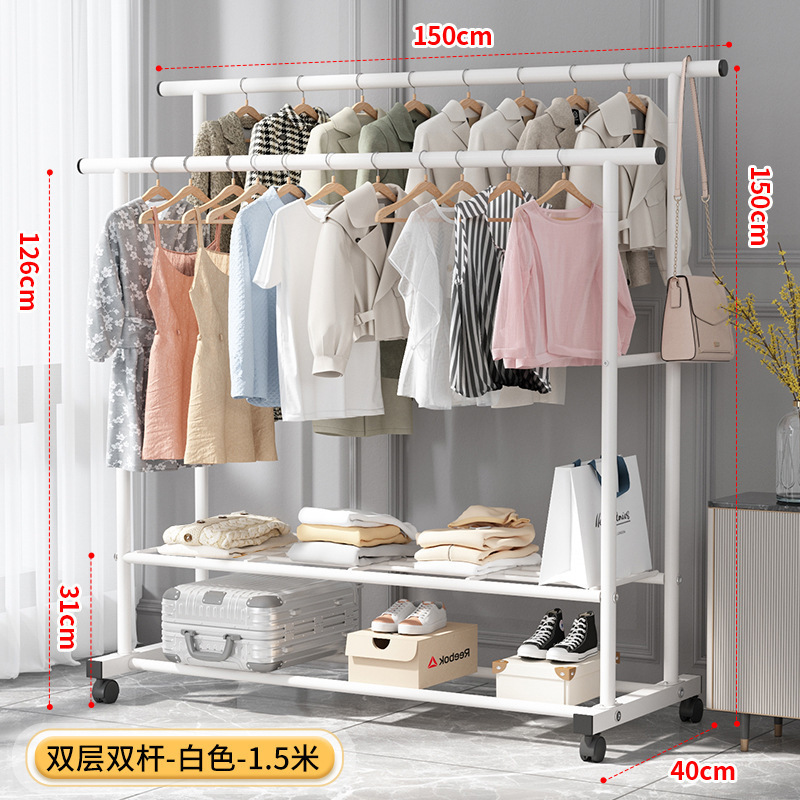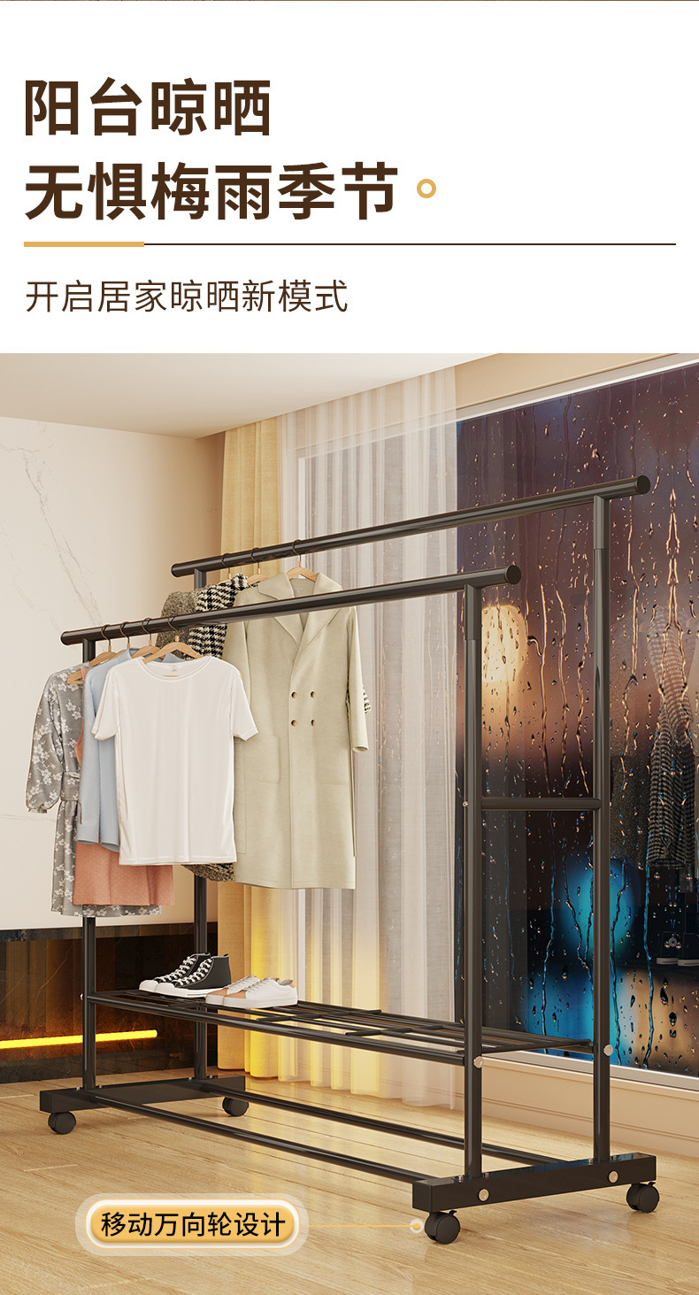 가정용 침실 옷걸이용 바닥 스탠딩 옷 건조대, 접이식 이중 막대, 간단한 실내 기숙사 이동식 옷 건조대, Peng Rui스토어 가기