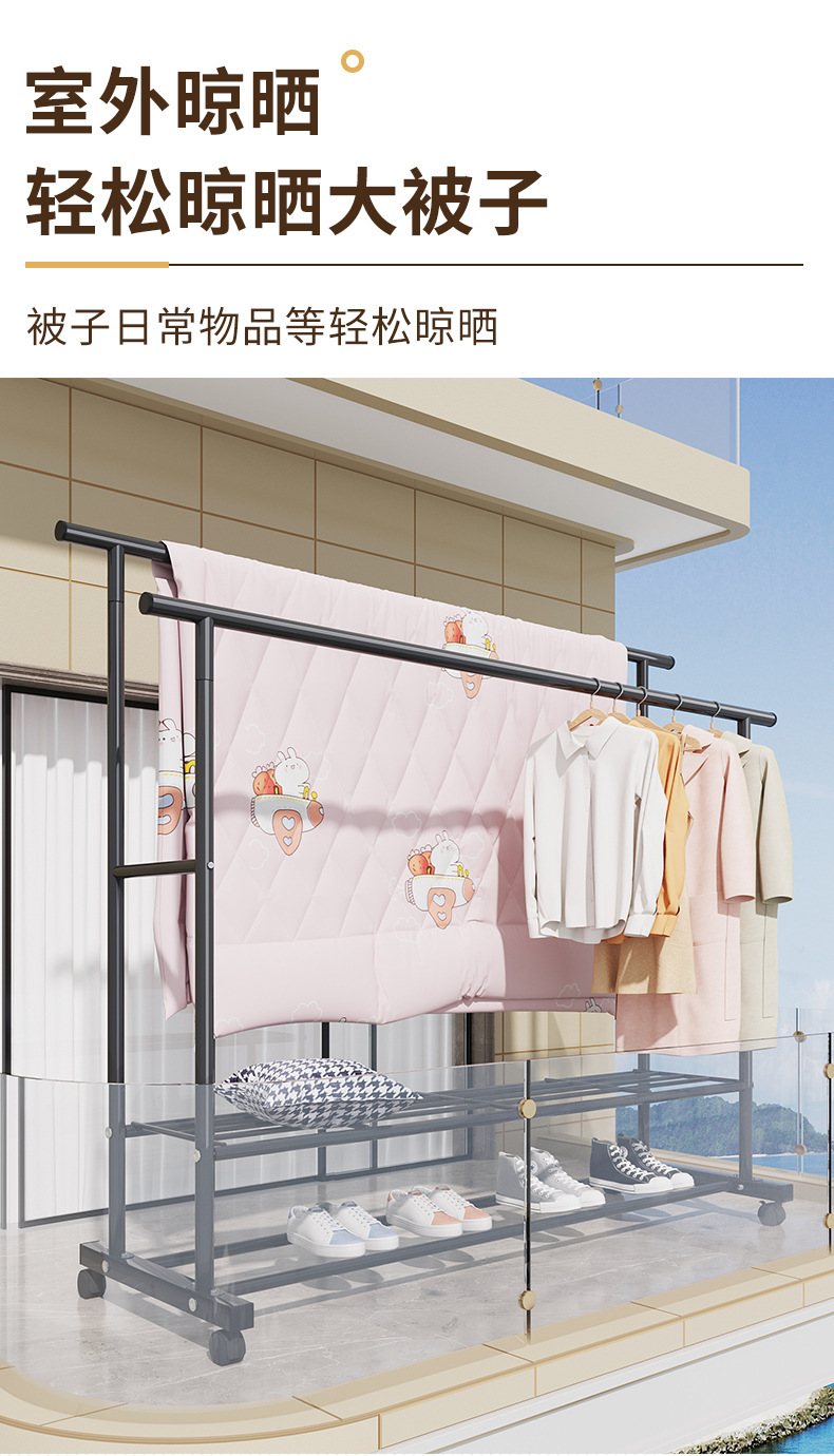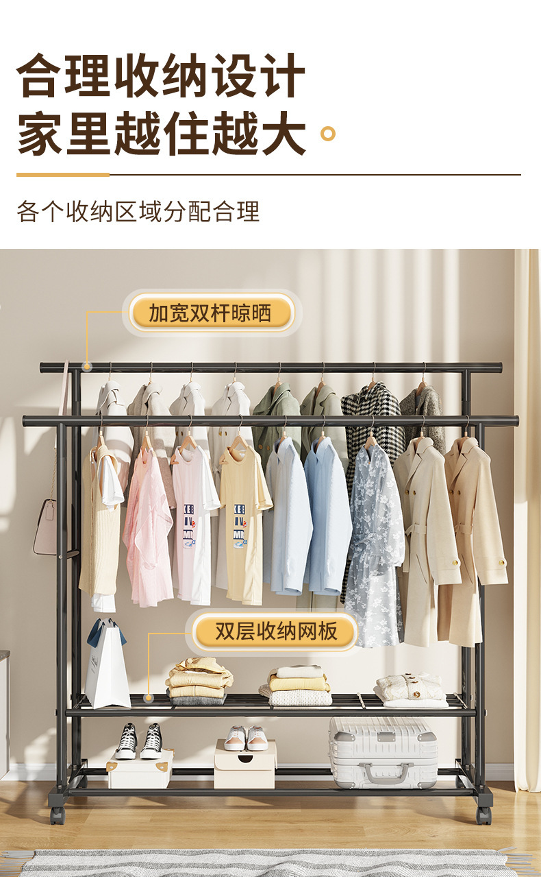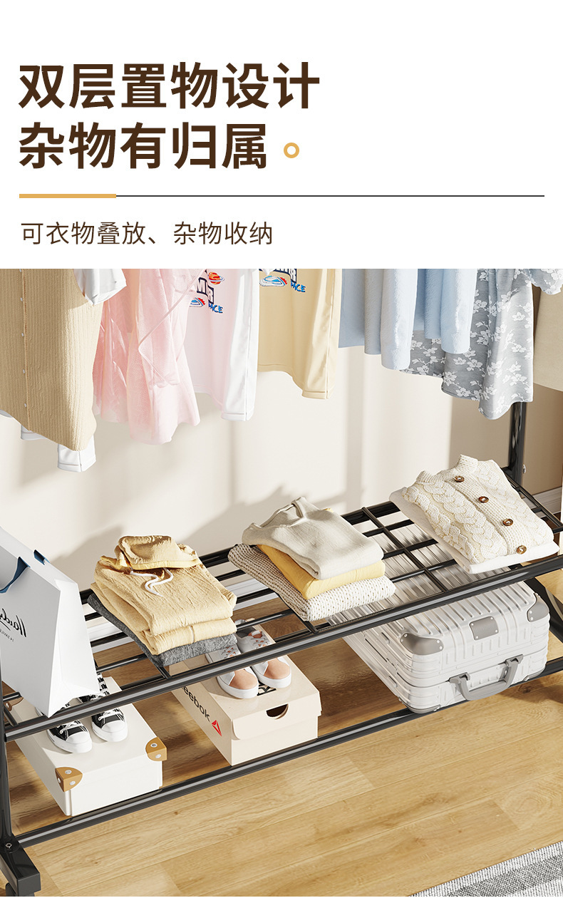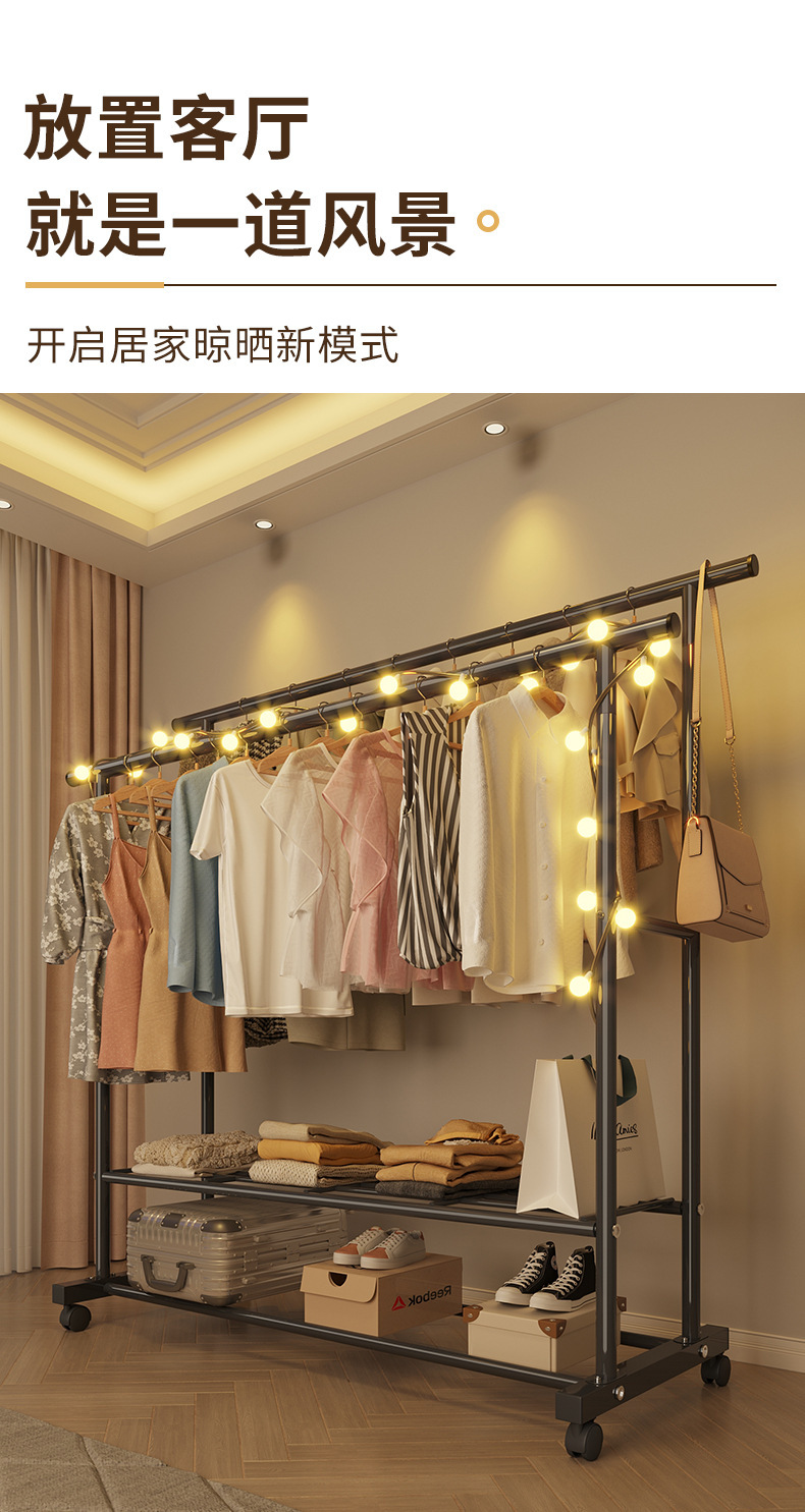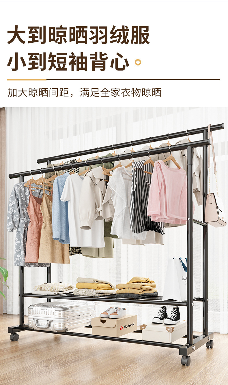 가정용 침실 옷걸이용 바닥 스탠딩 옷 건조대, 접이식 이중 막대, 간단한 실내 기숙사 이동식 옷 건조대, Peng Rui스토어 가기