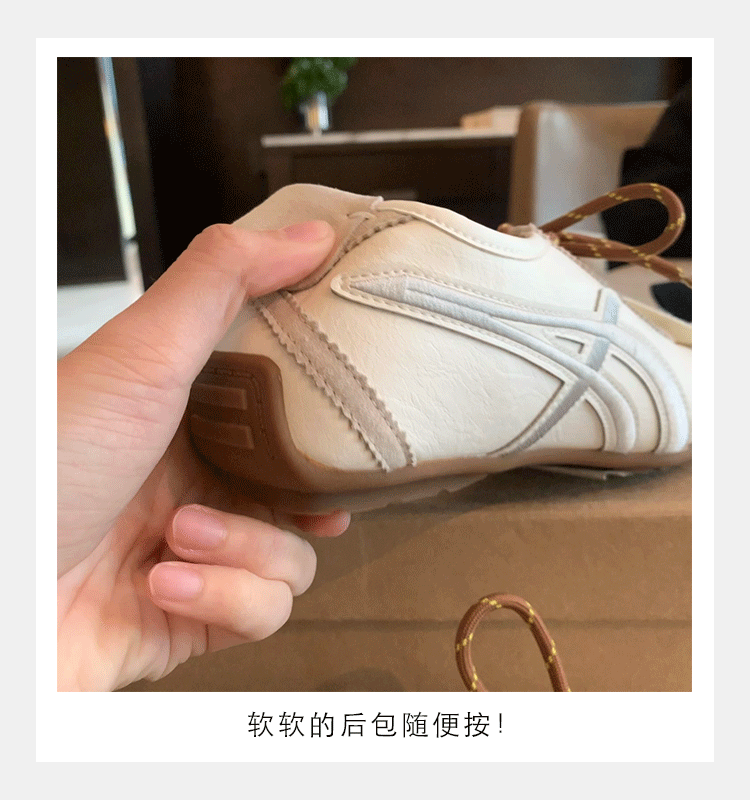 Cowhide 버전 ~ 세련된 대비 컬러 더블 신발 끈 사각형 둥근 머리 캐주얼 훈련 신발 여성 캐주얼 운동화