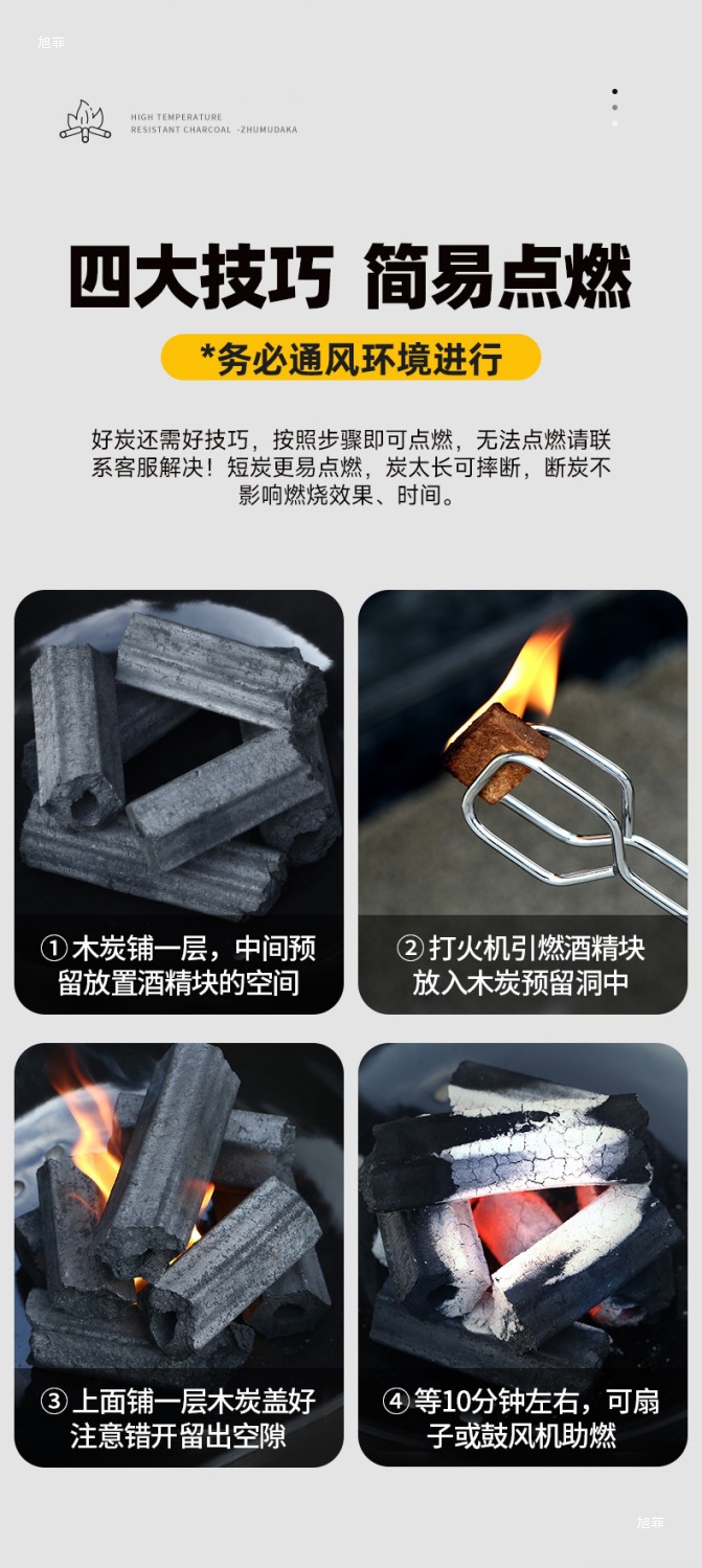 • 업그레이드된 무연 고온 내열 숯 - 1.5kg [자유 점화 블록]