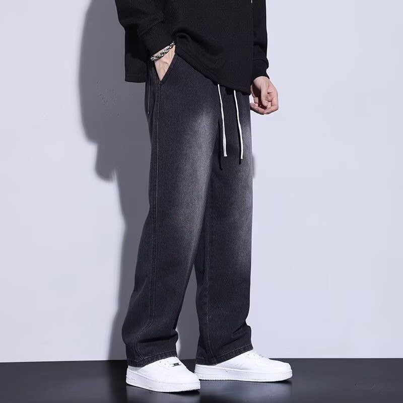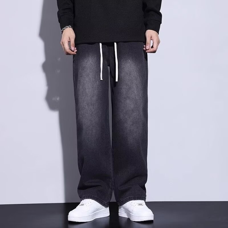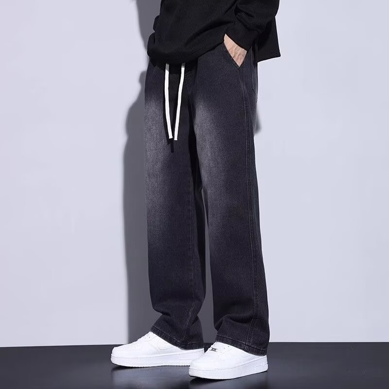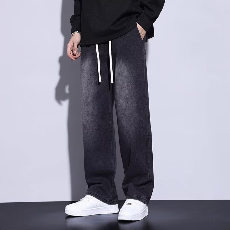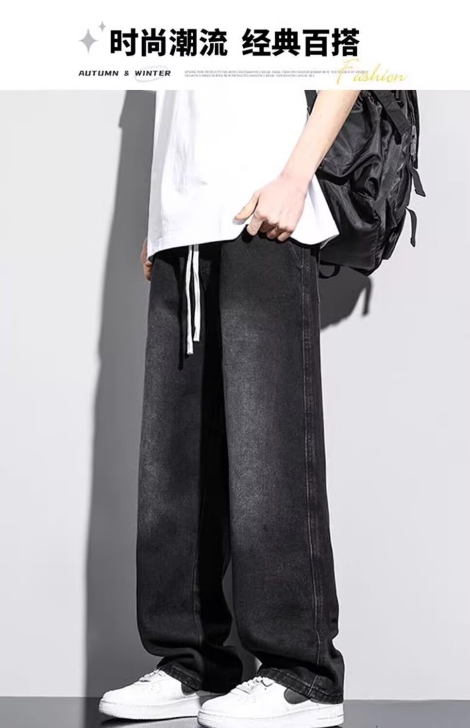 틈새 올 매치 그라디언트 청바지 남자 봄 캐주얼 루즈 핏 루즈 심플 블랙 스트레이트 바지