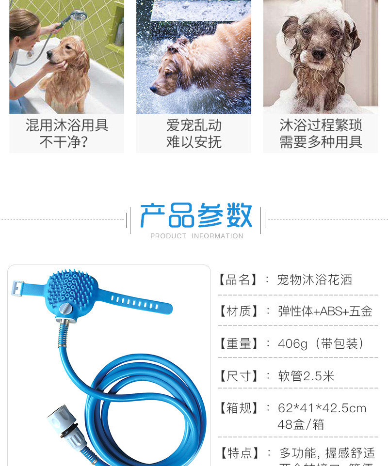 애완 동물 청소 제품 실리콘 샤워 브러시 편안한 마사지 개 고양이 입욕 유물 샤워 헤드스토어 가기