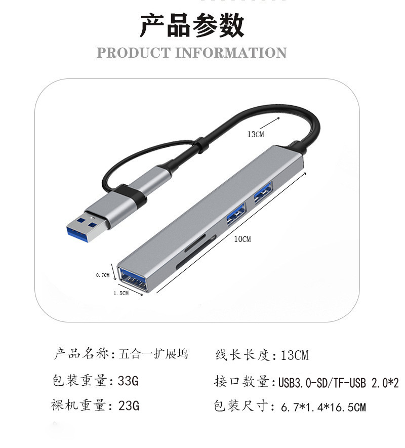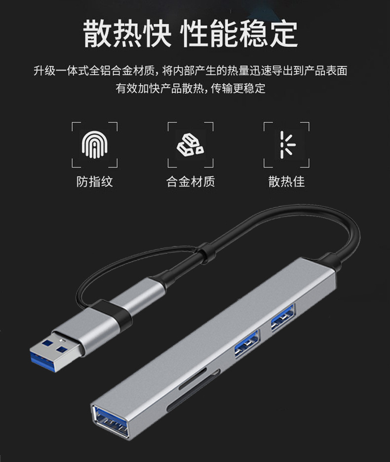 • 알루미늄 합금 5-in-1 USB+TYPE-C 소켓(포켓형)