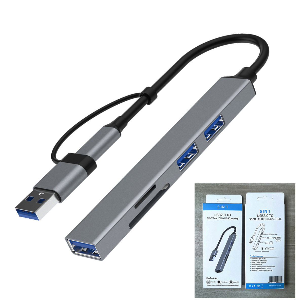 알루미늄 합금 5 대 1 컴퓨터 노트북 도킹 스테이션 유형-c 카드 리더 HUB 변환 국경 3.0 도킹 스테이션스토어 가기