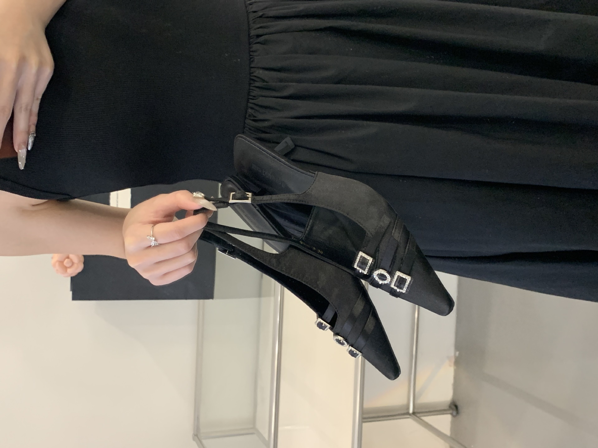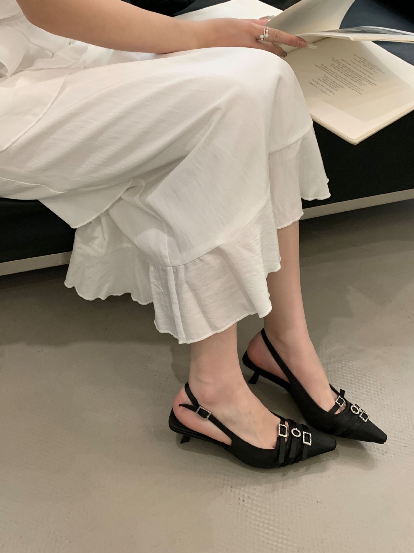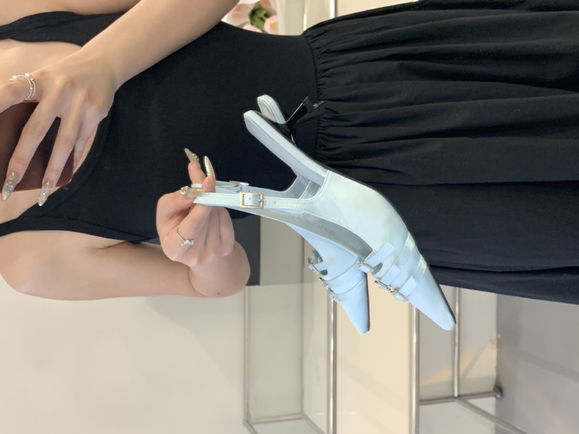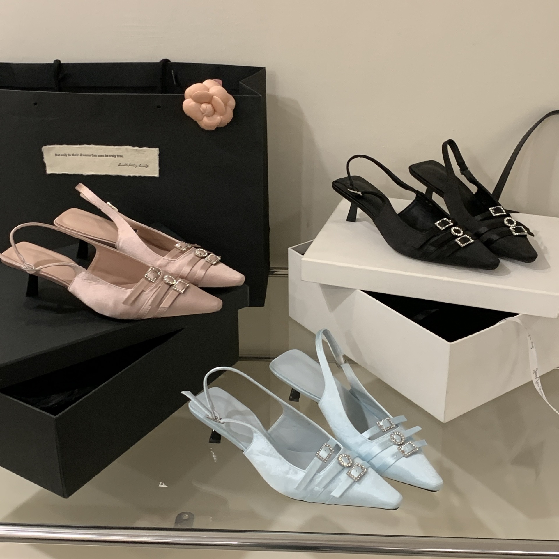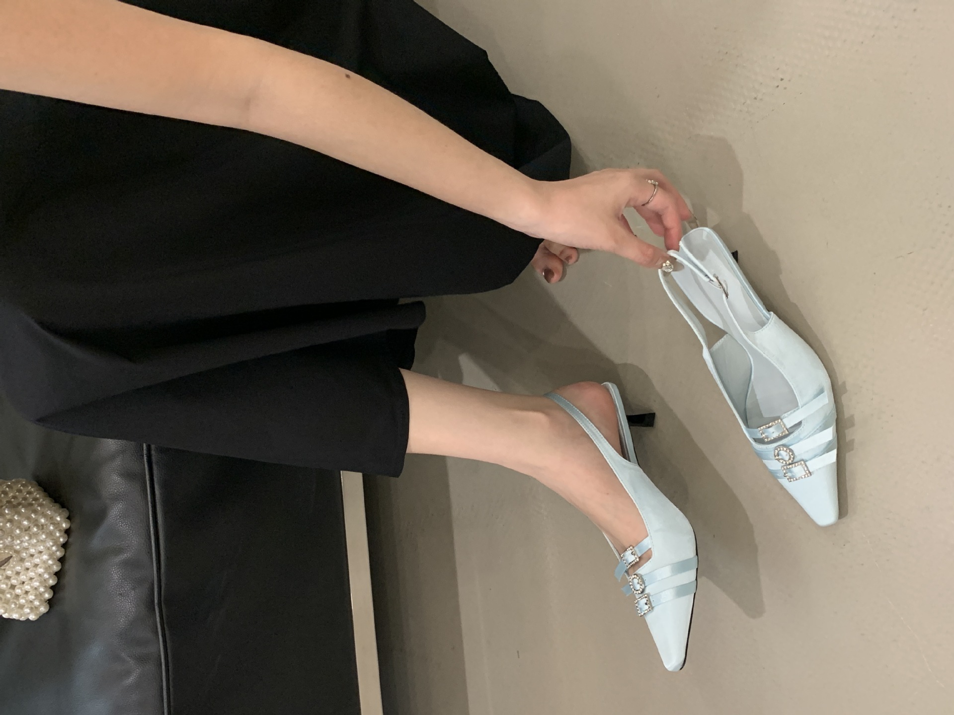 니치 프렌치 블루 발가락 샌들 페어리 슈즈 2025 새로운 봄과 여름 우아한 하이힐 스틸레토 힐 슈즈스토어 가기