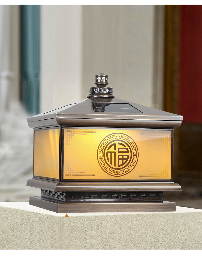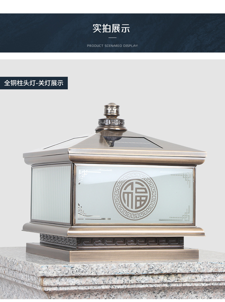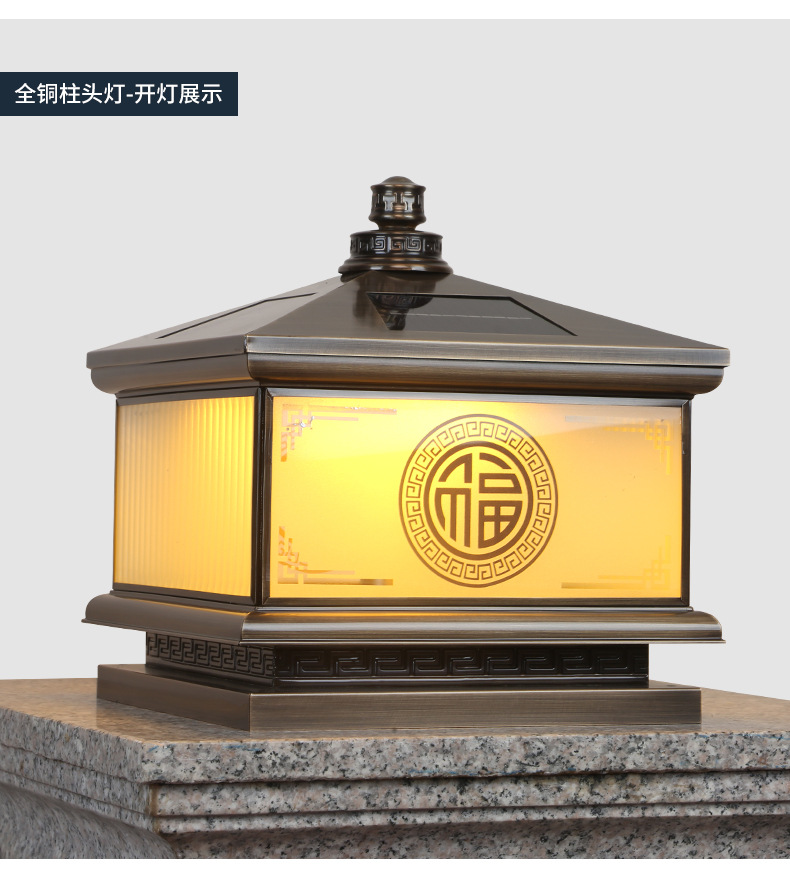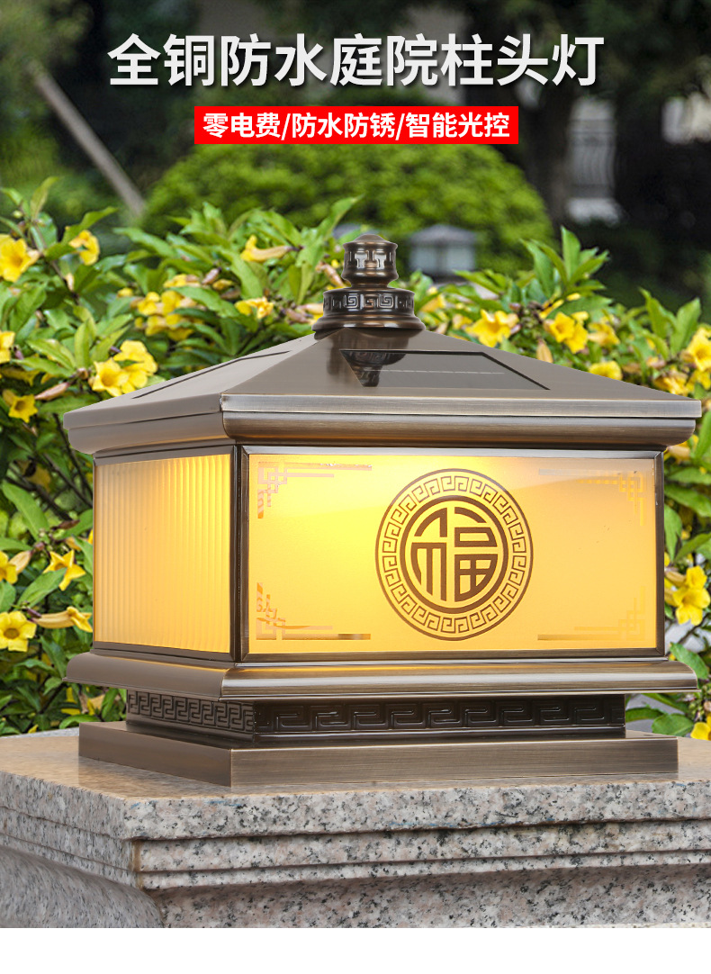 태양 기둥 램프 새로운 중국 스타일 모든 구리 야외 방수 동그라미 된 빌라 정원 문 옆 안뜰 기둥 램프