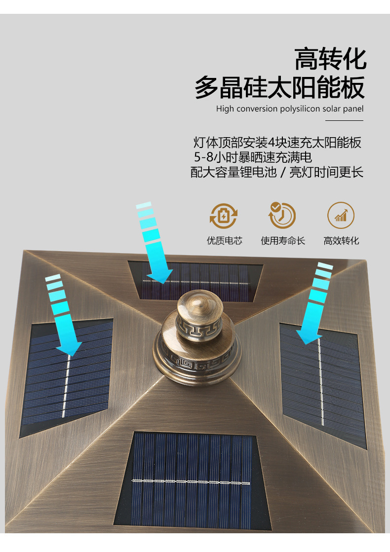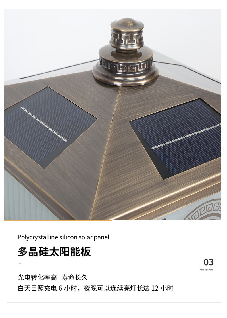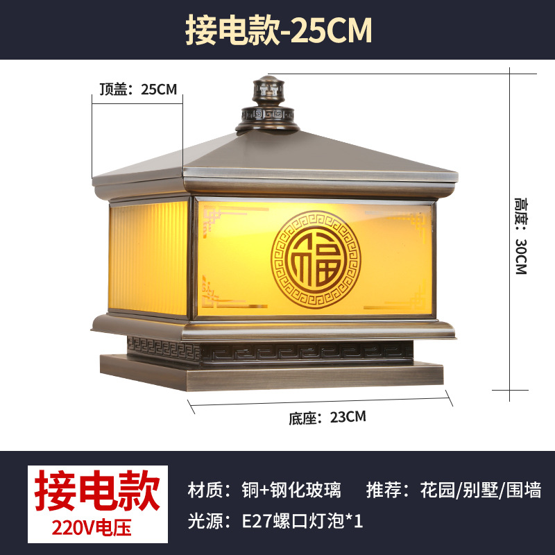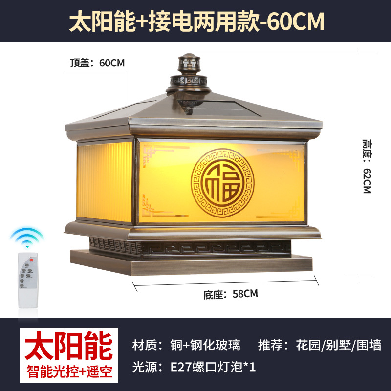 태양 기둥 램프 새로운 중국 스타일 모든 구리 야외 방수 동그라미 된 빌라 정원 문 옆 안뜰 기둥 램프