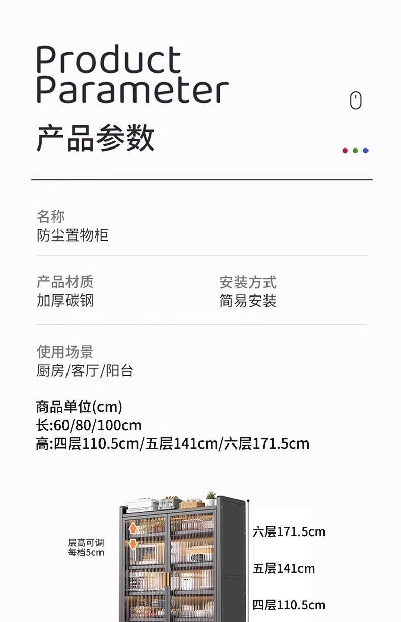 • 흰색 - 어두운 버전 [전체 강철 캐비닛 깊이 42CM] - 6겹 너비 80cm