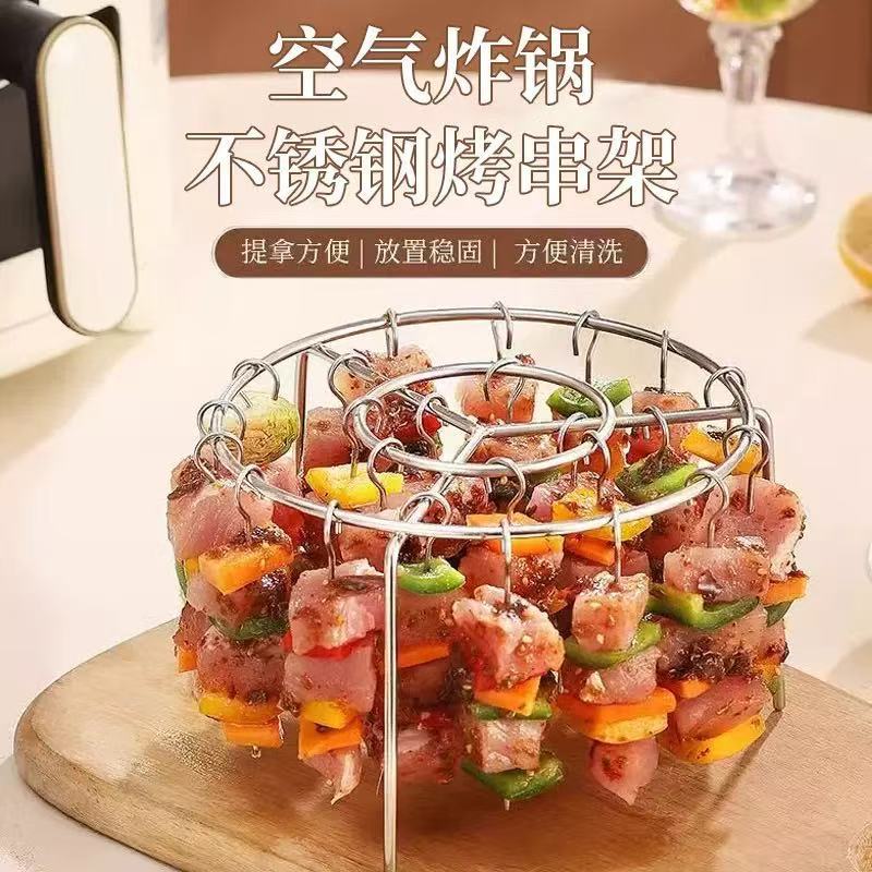 국경 도매 두꺼운 공기 프라이어 바베큐 랙 가정용 주방 오븐 라운드 교수형 바베큐 랙 수직 바베큐