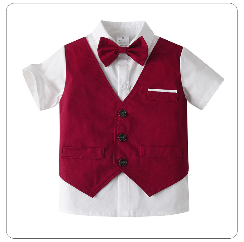 대외 무역 아동 의류 도매 소년 정장 여름 투피스 세트 어린 소년 반팔 반바지 가짜 조끼 어린이 여름 옷