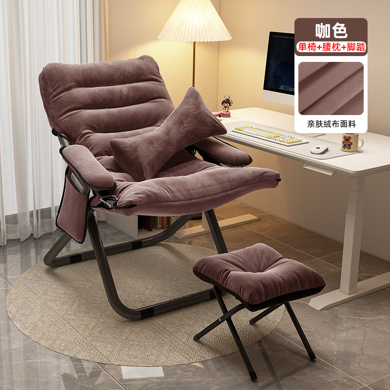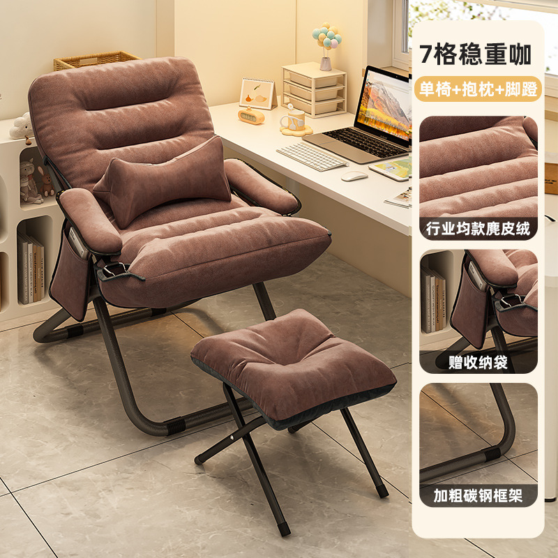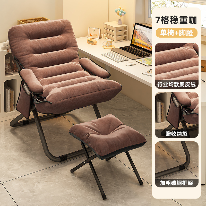 • 두꺼운 싱글 의자 + 요추 베개 + 발판 - 브라운 [무료 보관 가방] 3단 조절