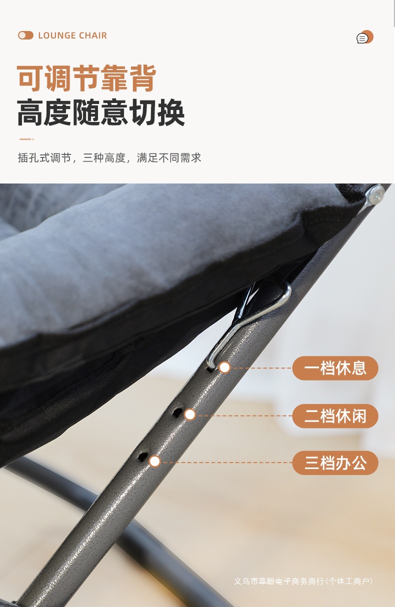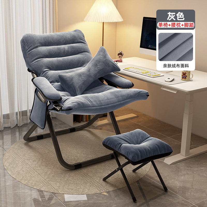 • 두꺼운 싱글 의자 + 요추 베개 + 발판 - 고급 그레이 [무료 보관 가방] 3단계 조절