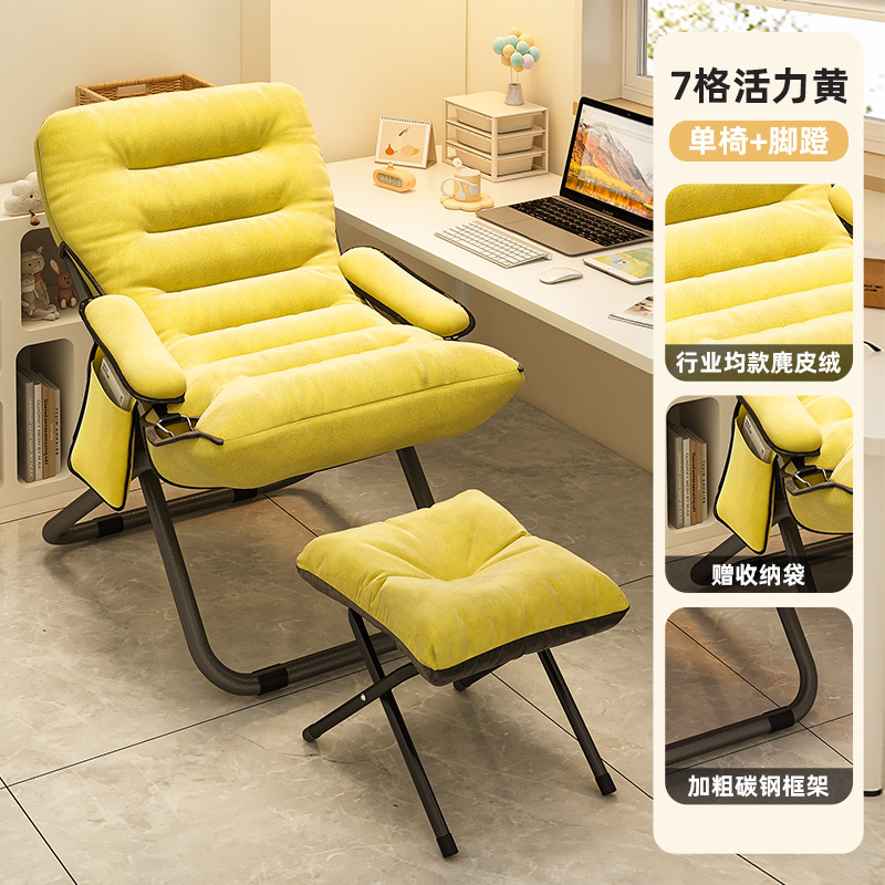 • 두꺼운 싱글 의자 + 요추 베개 + 발판 - 따뜻한 노란색 [무료 보관 가방] 3단계 조절
