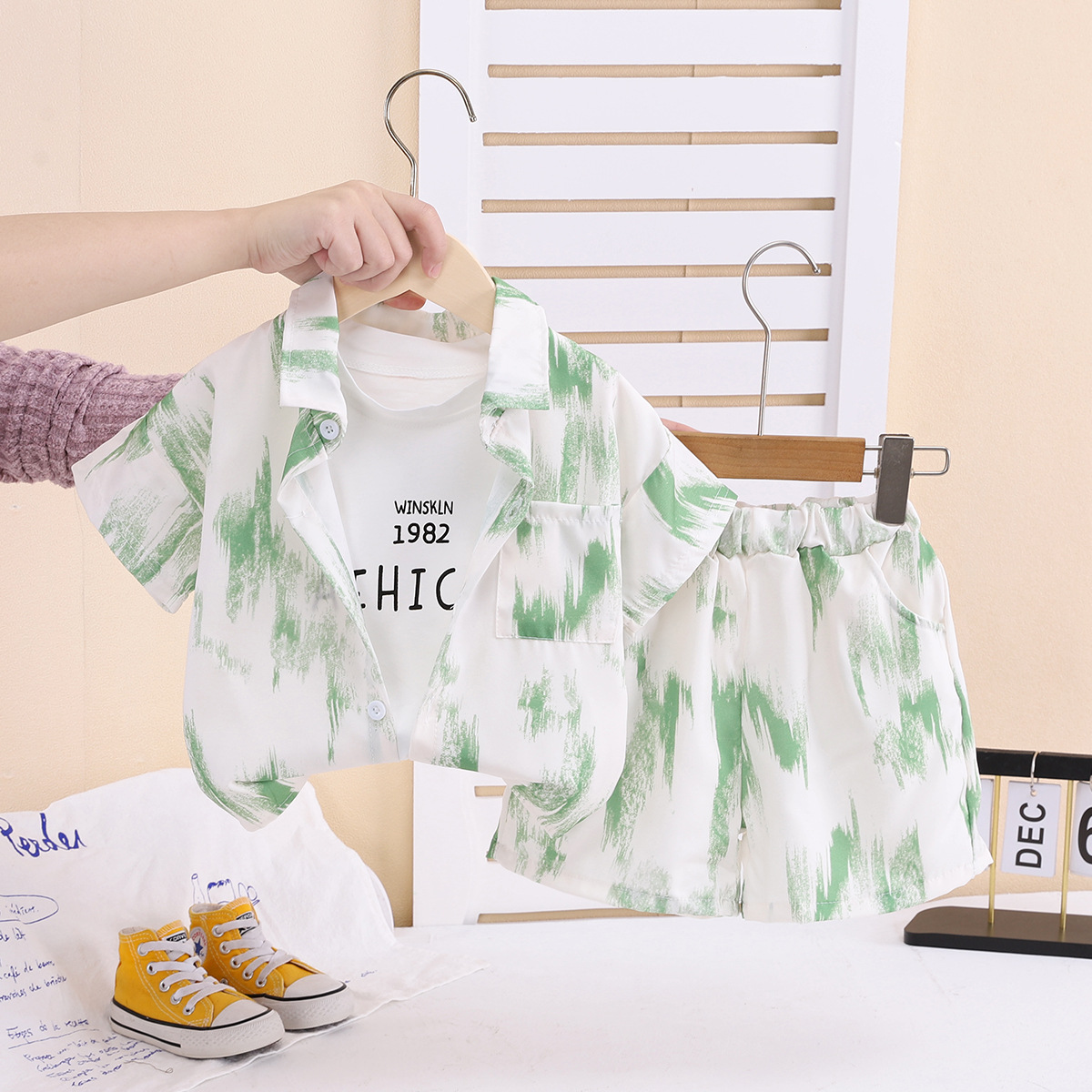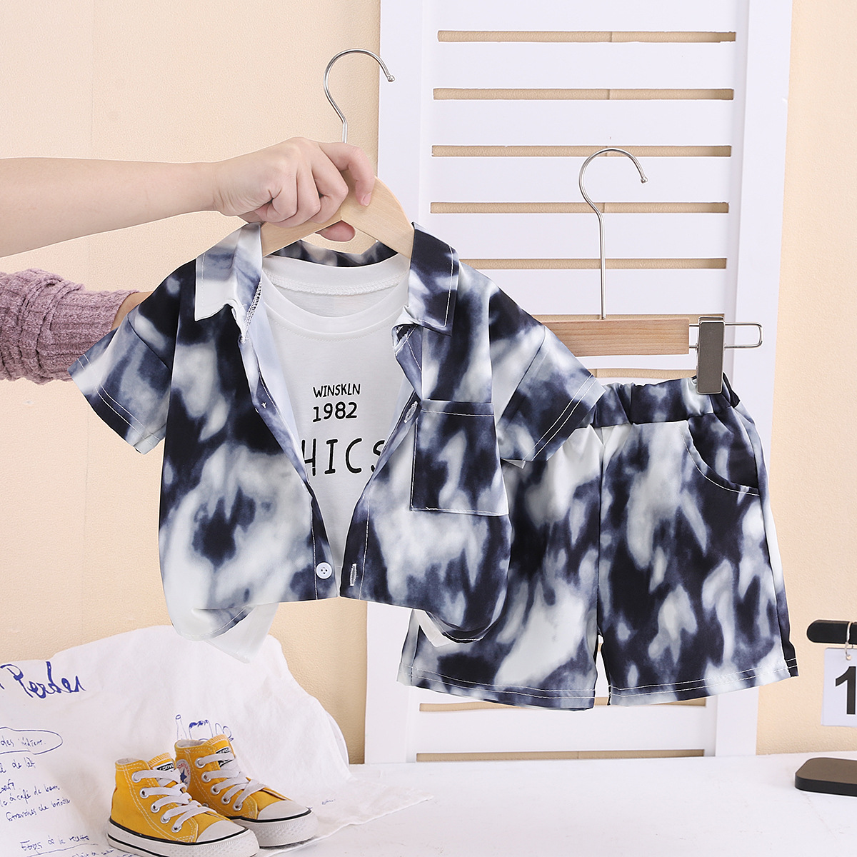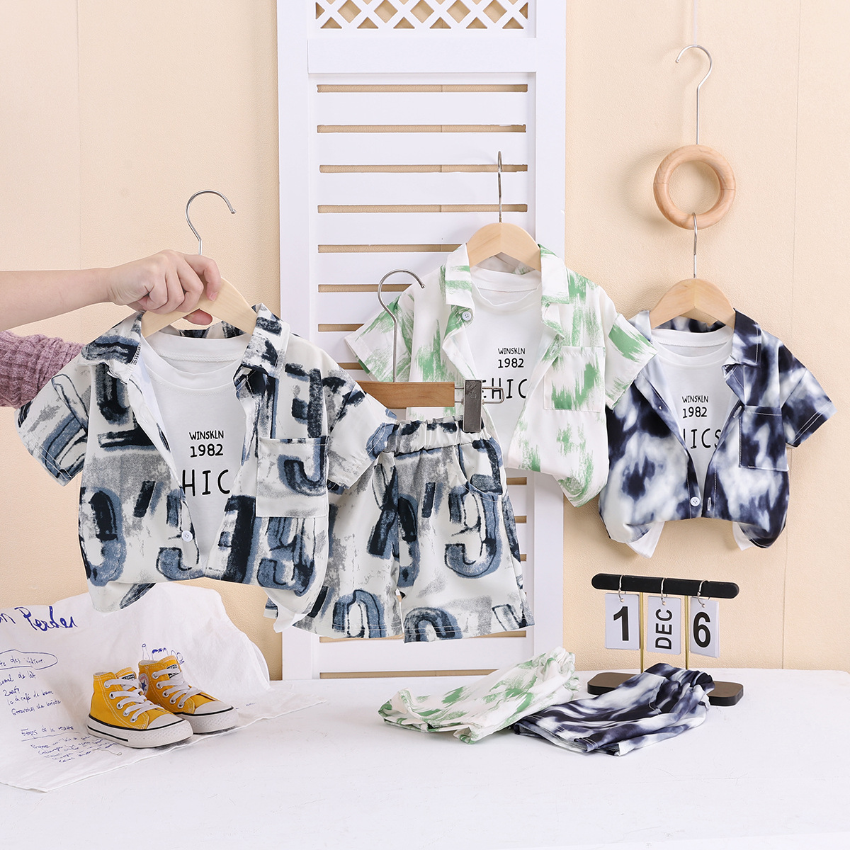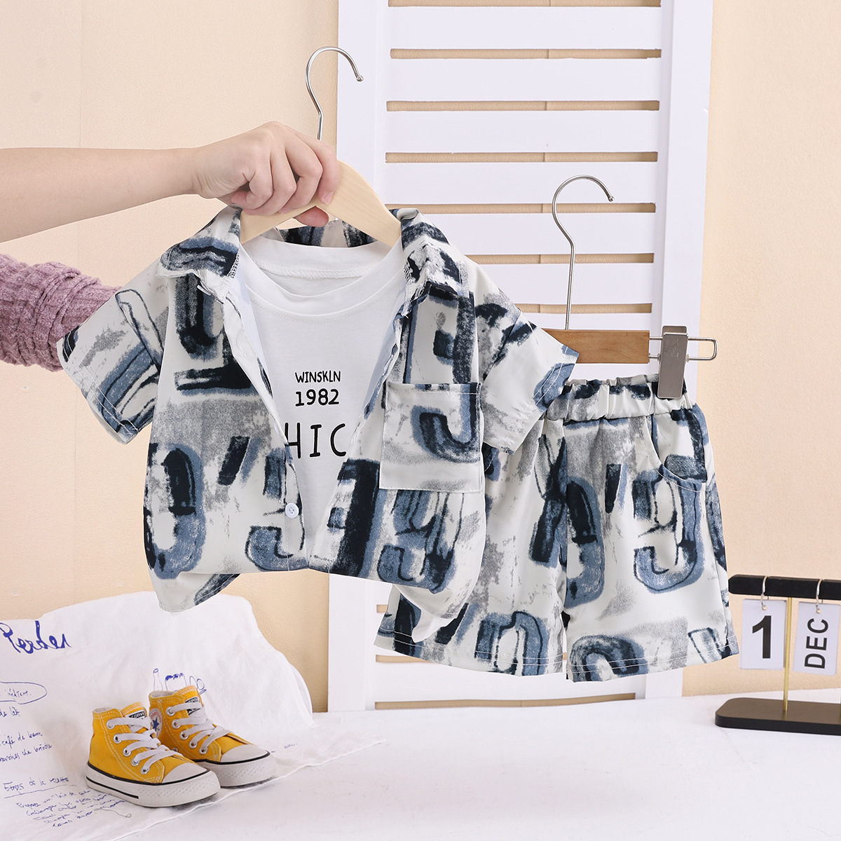 2025 년 새 소년 반팔 세트 여름 한국 티셔츠 반바지 3 피스 여름 옷 캐주얼 아동복스토어 가기