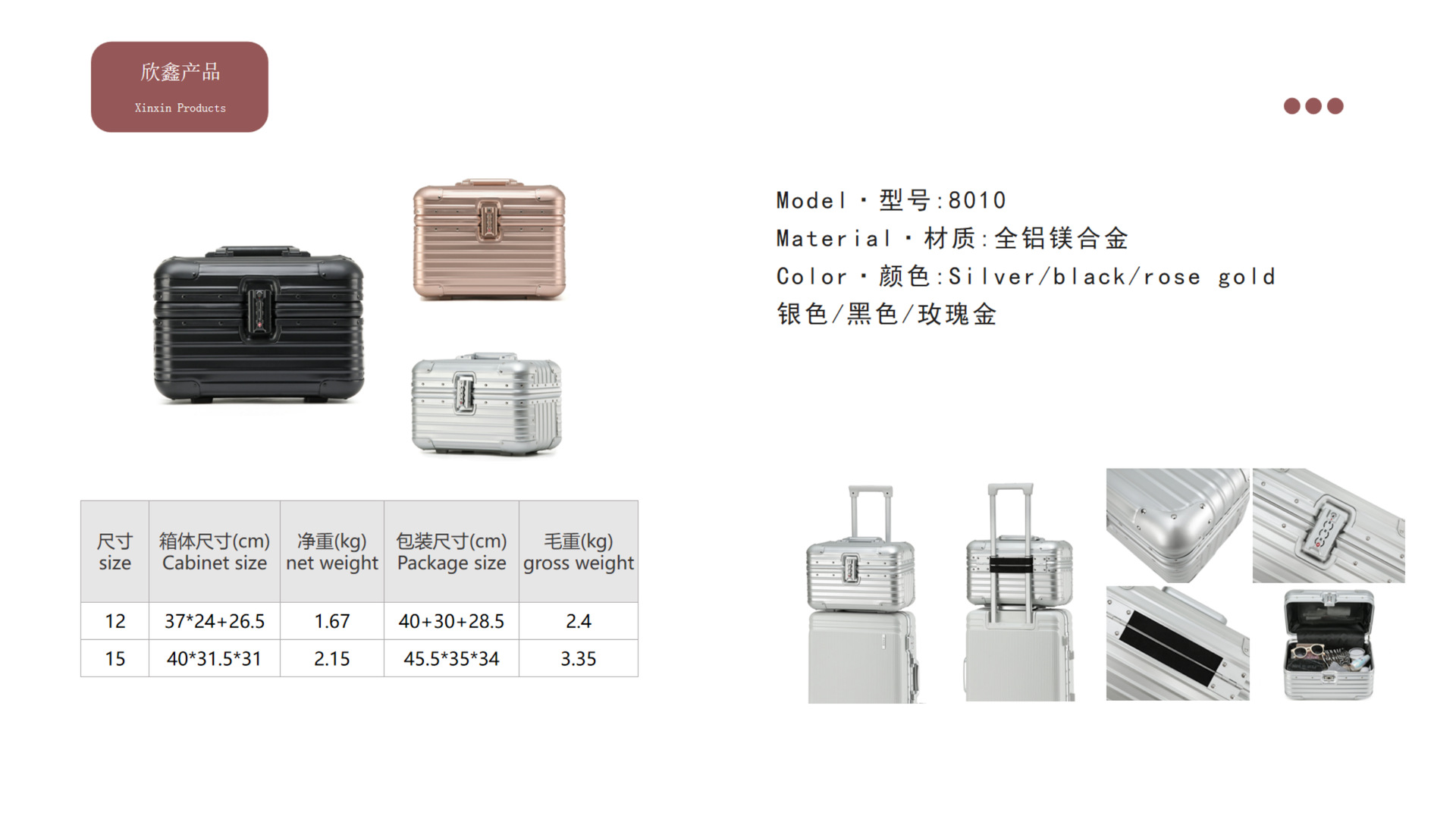 국경 15 인치 사진 상자 전체 알루미늄 합금 가방 알루미늄 프레임 가방 12 인치 TSA 코드 잠금 금속 상자스토어 가기