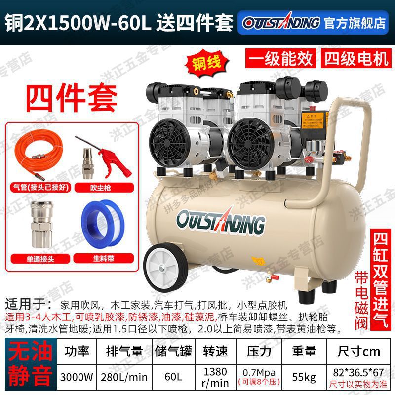 Otus 기름없는 못 총 킹 공기 압축기 목공 작은 침묵하는 고압 공기 펌프 공기 압축기 220V 가구