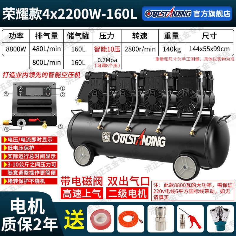 Otus 기름없는 못 총 킹 공기 압축기 목공 작은 침묵하는 고압 공기 펌프 공기 압축기 220V 가구스토어 가기