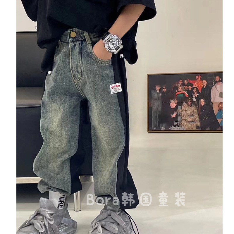 소년 바지 어린이 청바지 바느질 봄 2025 새로운 한국 스타일 쿨 잘 생긴 넓은 다리 소녀 유행 얇은 유행 바지스토어 가기