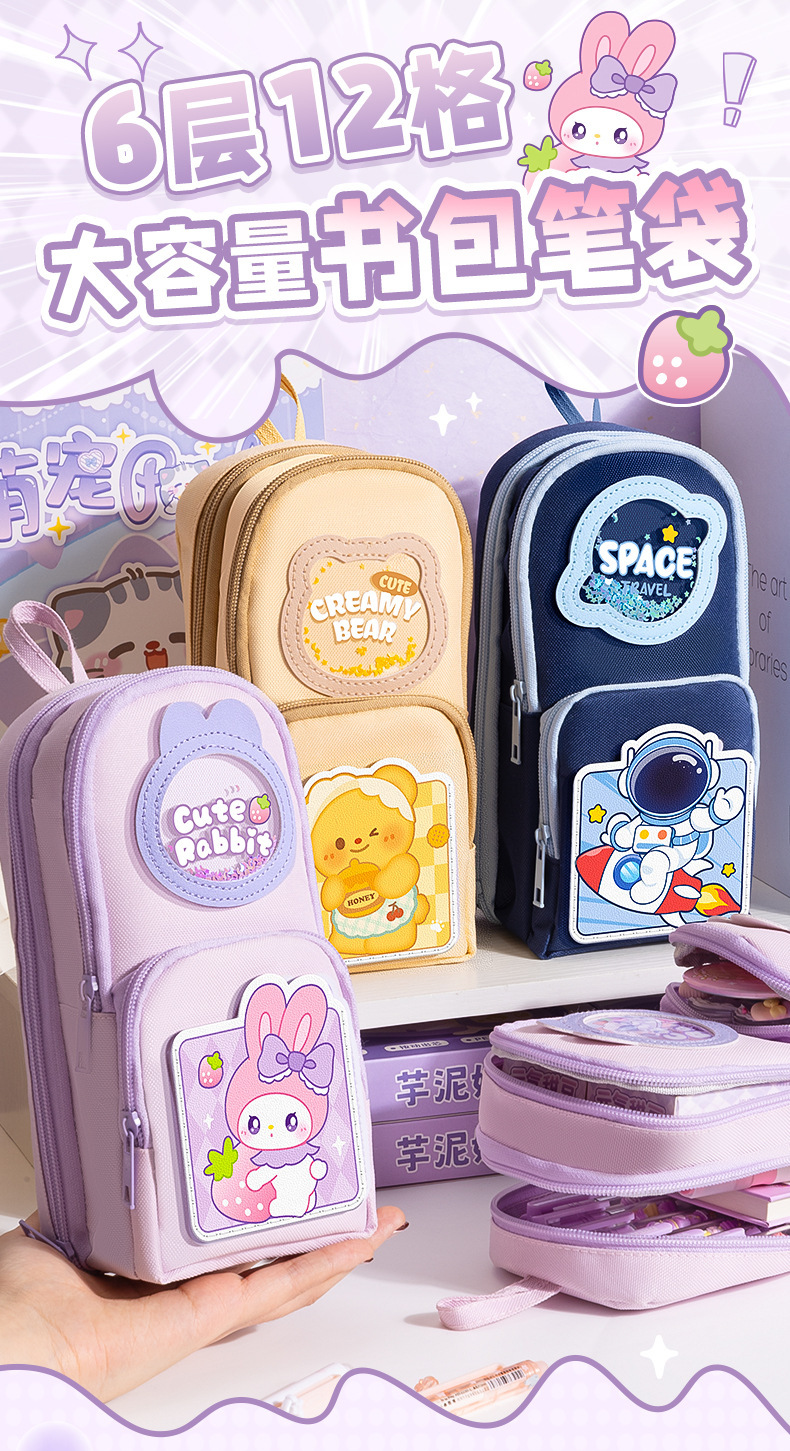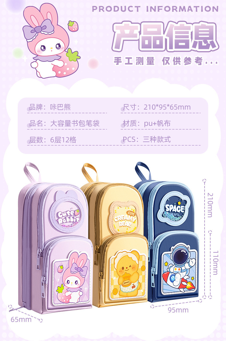 Kaba Bear 휴대용 Schoolbag 유형 초등 학생을위한 대용량 연필 케이스 높은 색상 값 인 스타일 다기능 연필 문구 상자