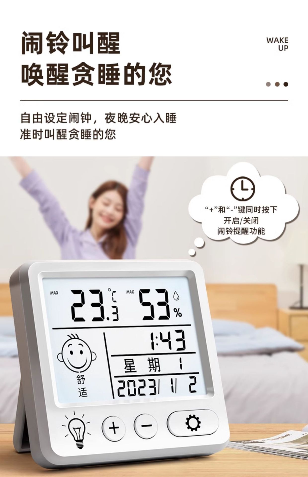 정밀 디지털 온도계 데스크탑 전자 온도 및 습도 측정기 알람 시계 모성 및 유아 가정용 벽 장착 온도 및 습도 실내 및 실외스토어 가기