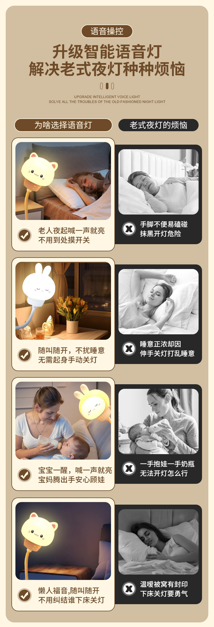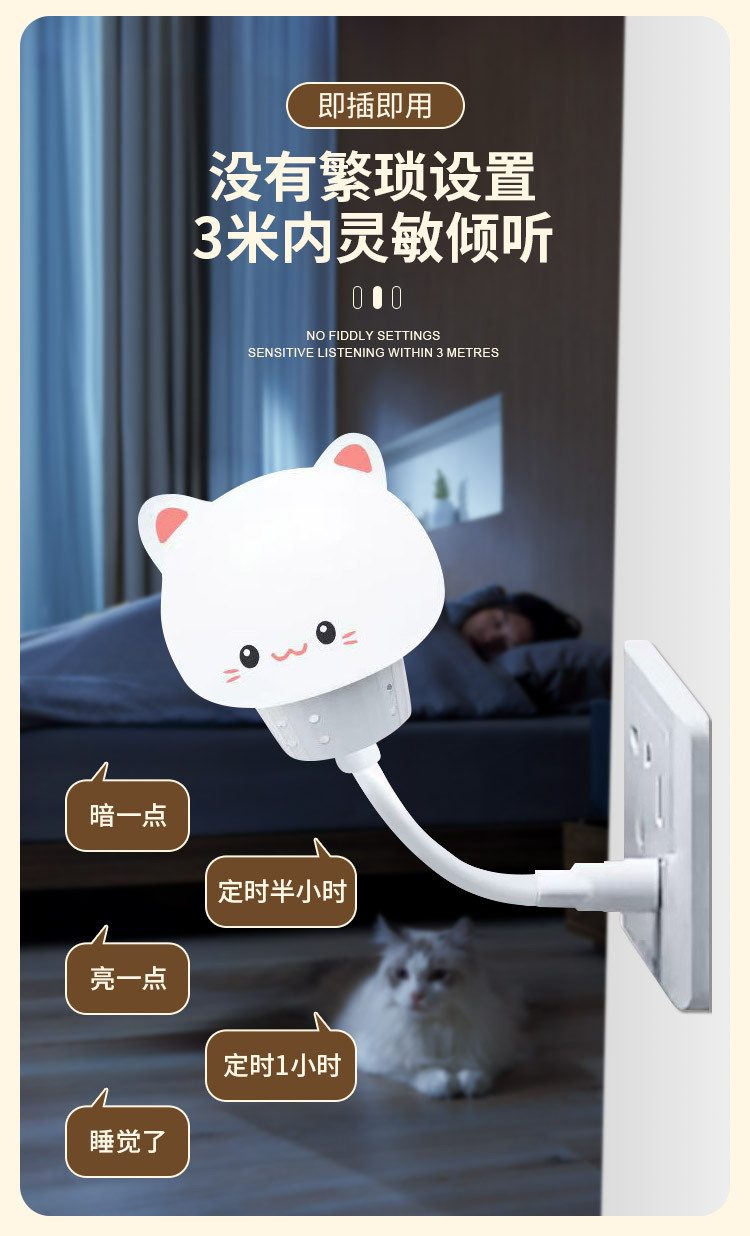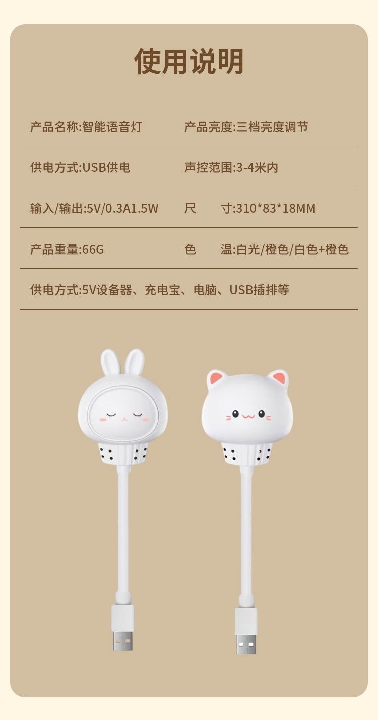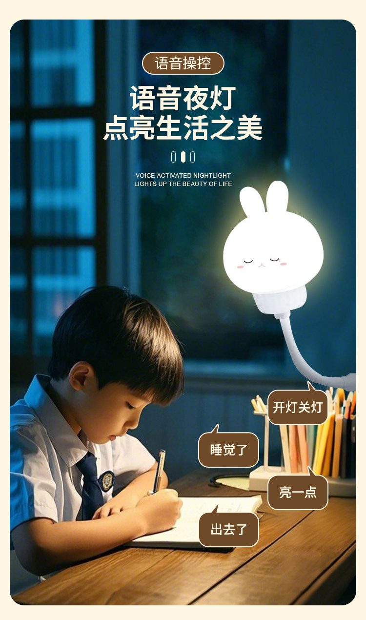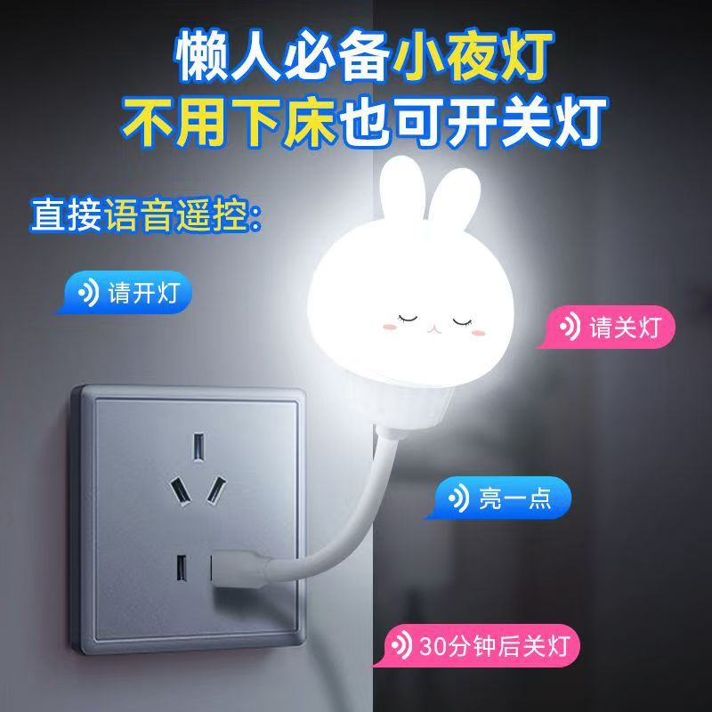지능형 음성 제어 토끼 야간 조명 usb 침실 침대 옆 타이밍 음성 제어 고양이 플러그인 책상 램프 야간 조명스토어 가기