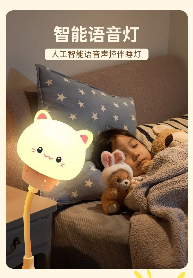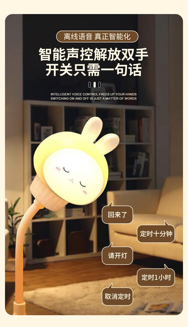 지능형 음성 제어 토끼 야간 조명 usb 침실 침대 옆 타이밍 음성 제어 고양이 플러그인 책상 램프 야간 조명