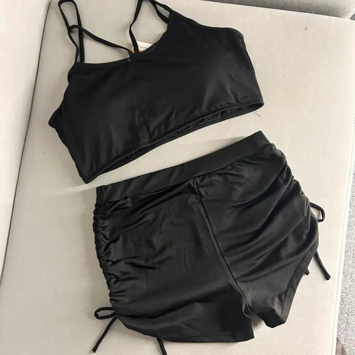 새로운 검은 줄무늬 선 스크린 블라우스 분할 보수적 인 긴팔 복서 수영복 여성 온천 휴가 고기스토어 가기