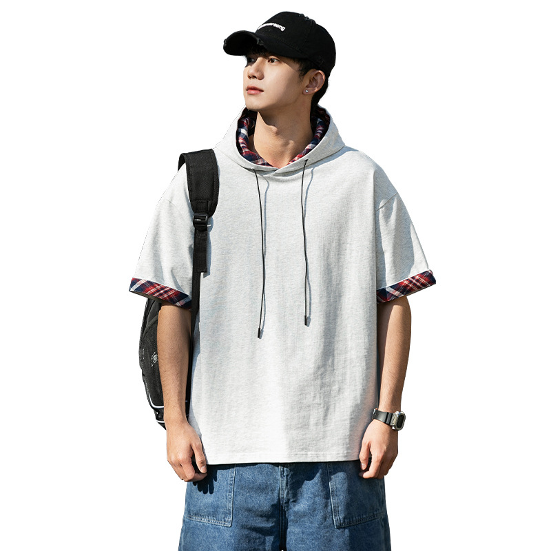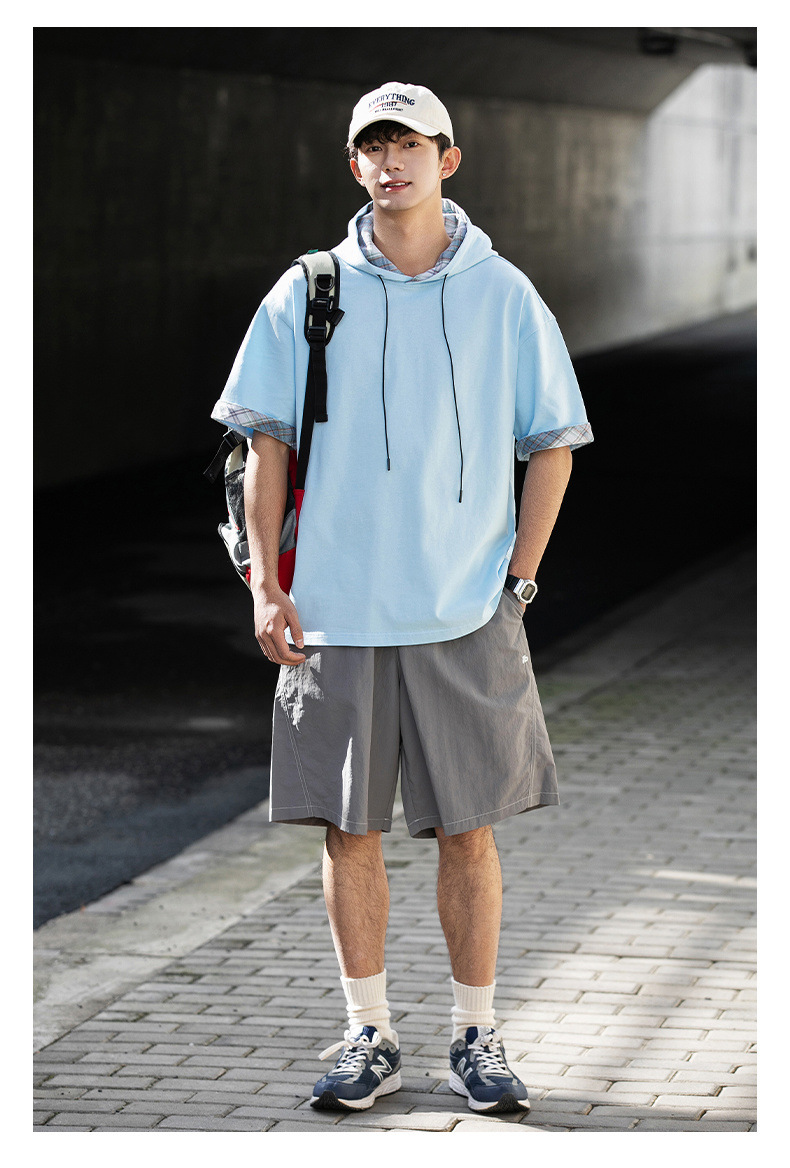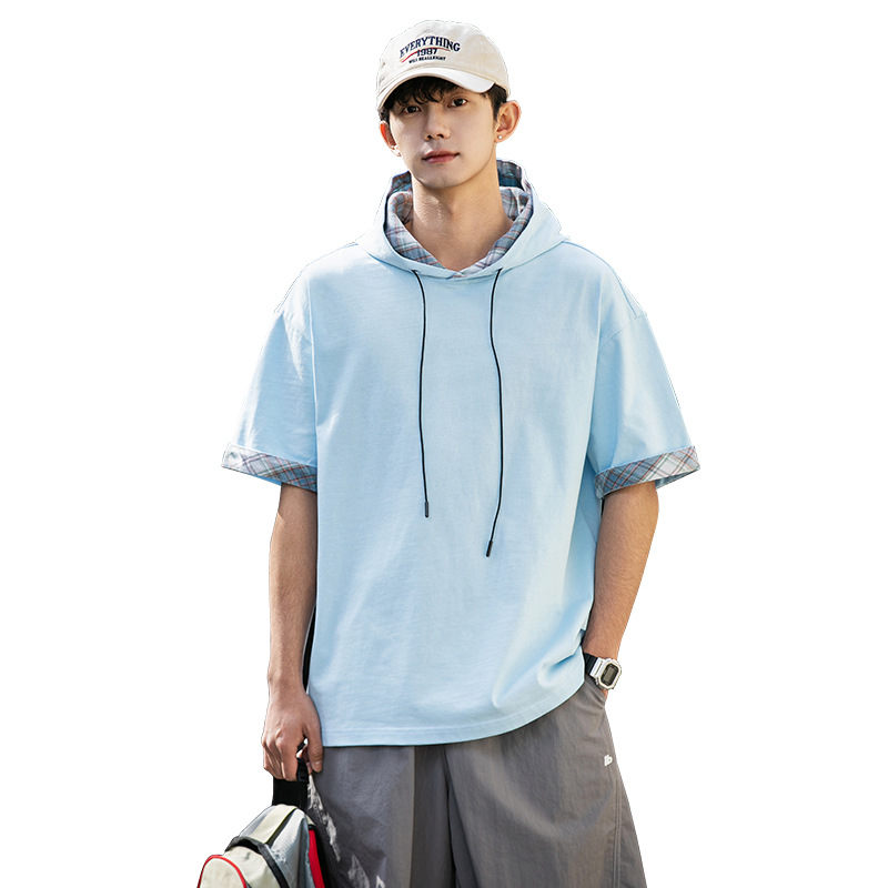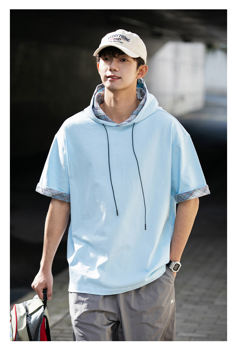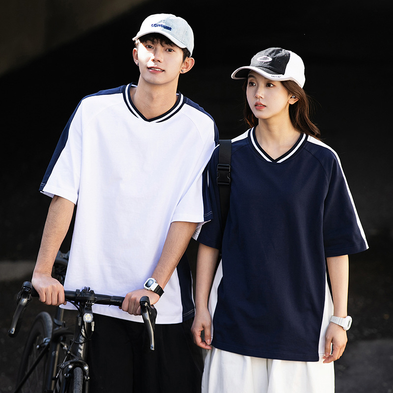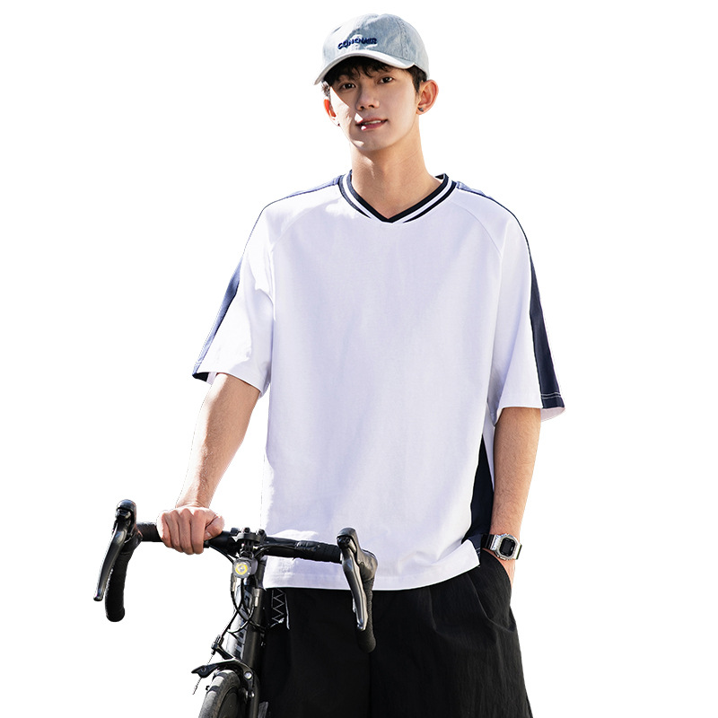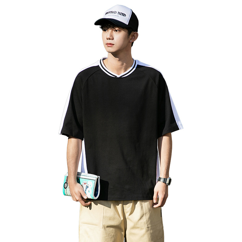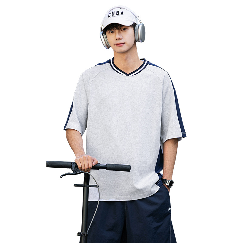 십대 티셔츠 미국 반팔 남성 여름 2025 새로운 패션 브랜드 컬러 매칭 느슨한 반소매 아이스 실크 남성 티셔츠스토어 가기