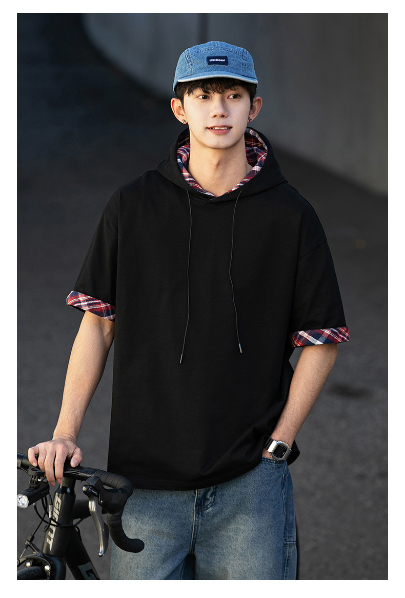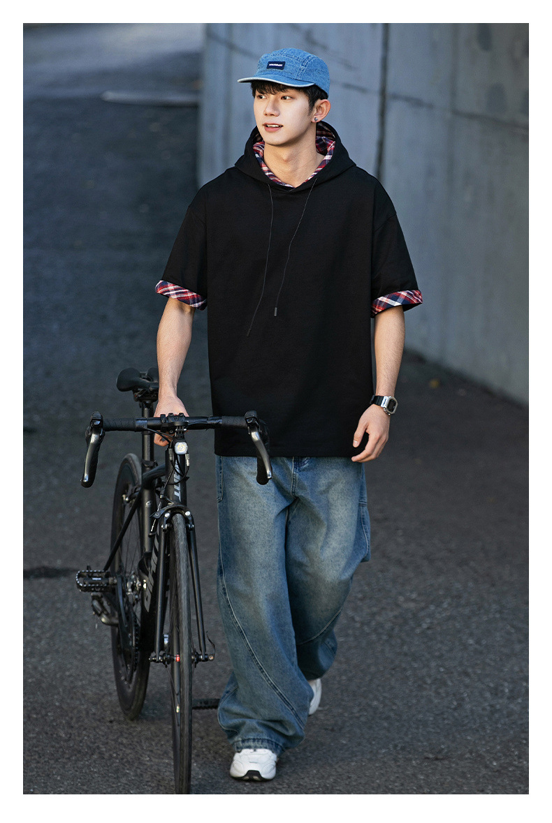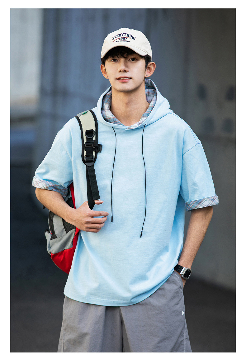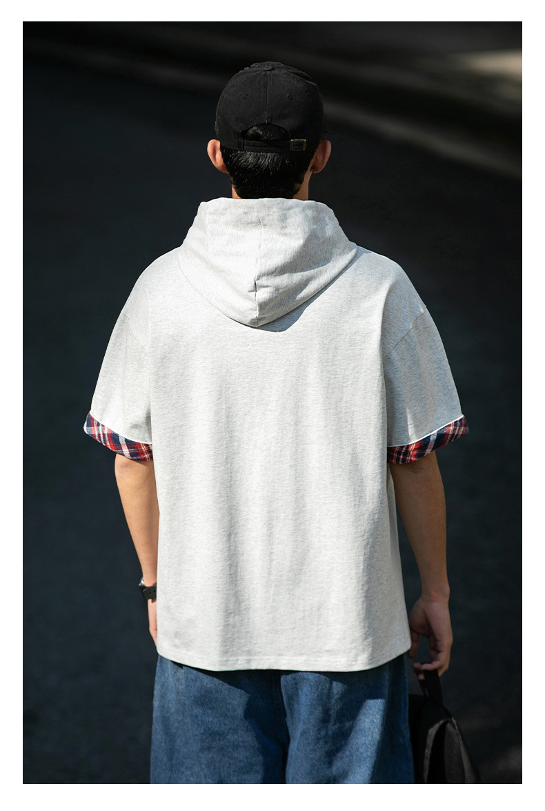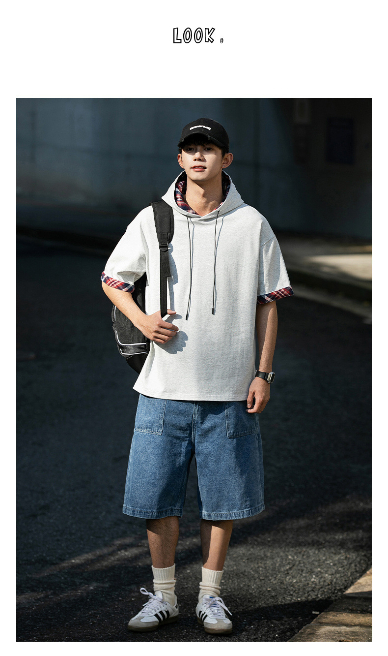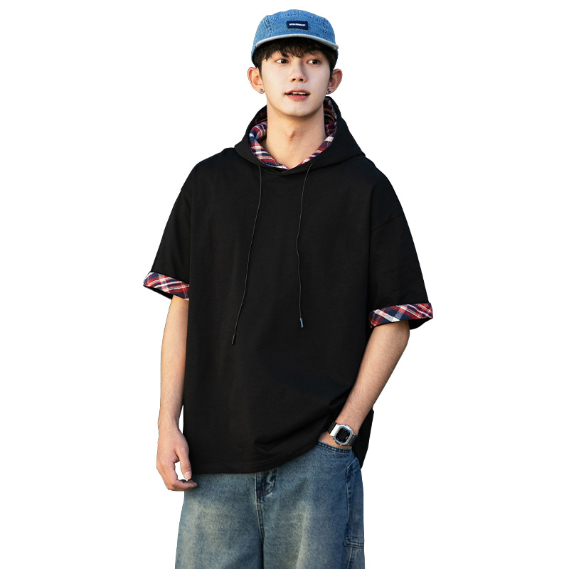 십대 티셔츠 미국 반팔 남성 여름 2025 새로운 패션 브랜드 컬러 매칭 느슨한 반소매 아이스 실크 남성 티셔츠스토어 가기