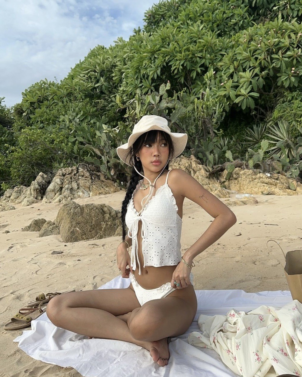 태국 틈새 카미 솔 스플릿 수영복 여성 2025 년 여름 새로운 경미한 지방 고기 커버 슬리밍 할로우 비키니