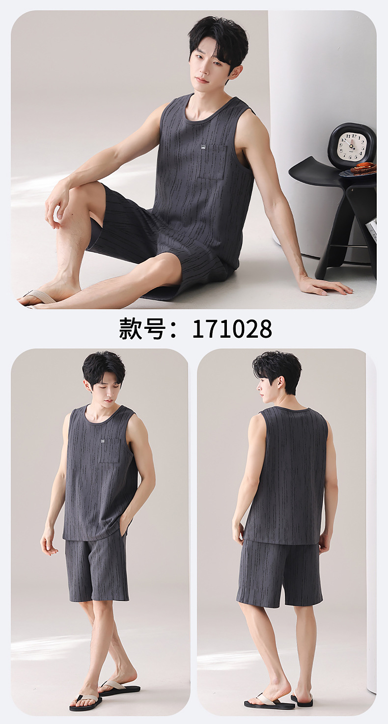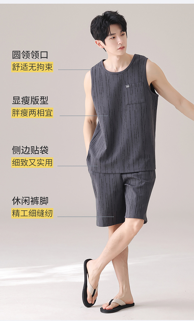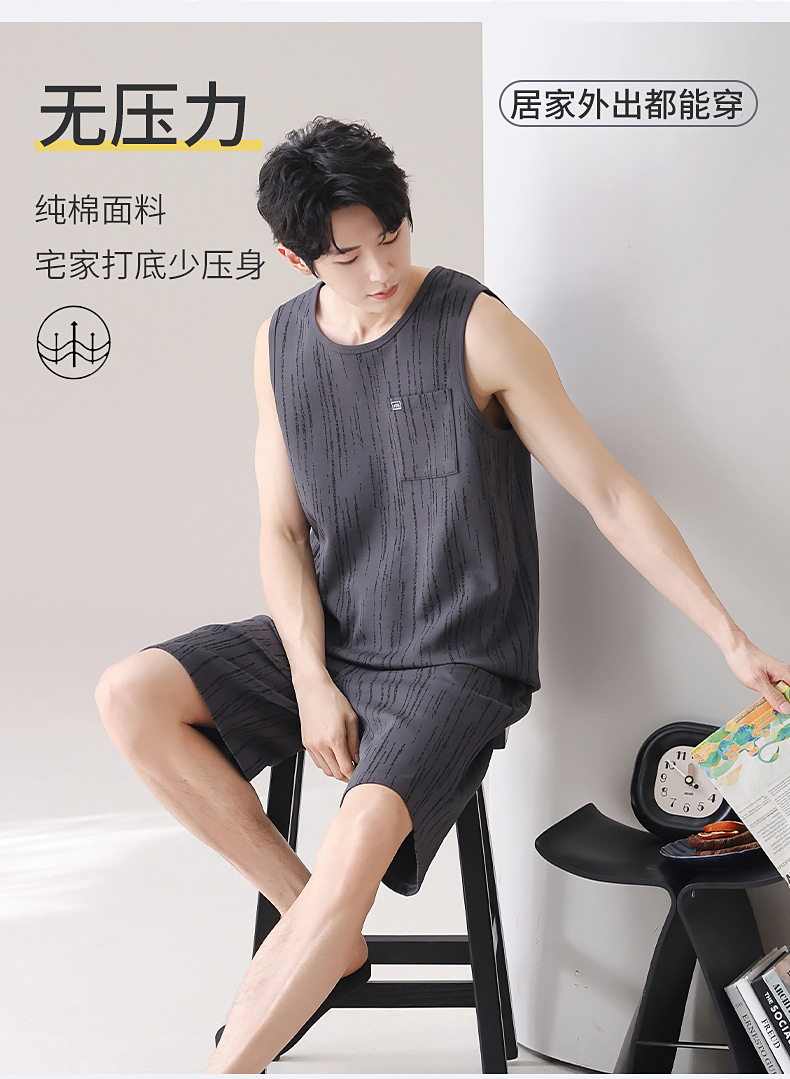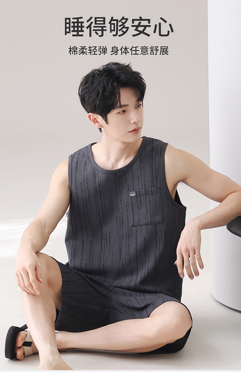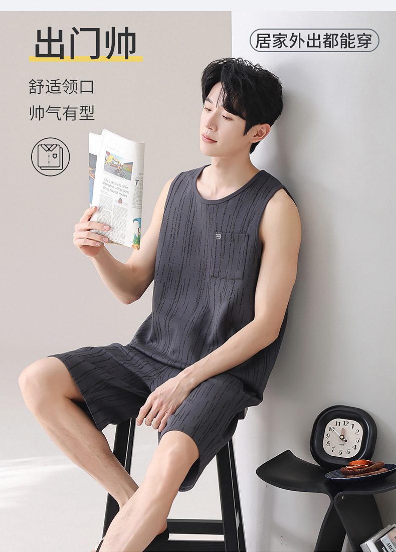 민소매 잠옷 남자 여름 얇은 순면 느슨한 조끼 반바지 세트 플러스 사이즈 십대 학생 홈 옷 얇은스토어 가기