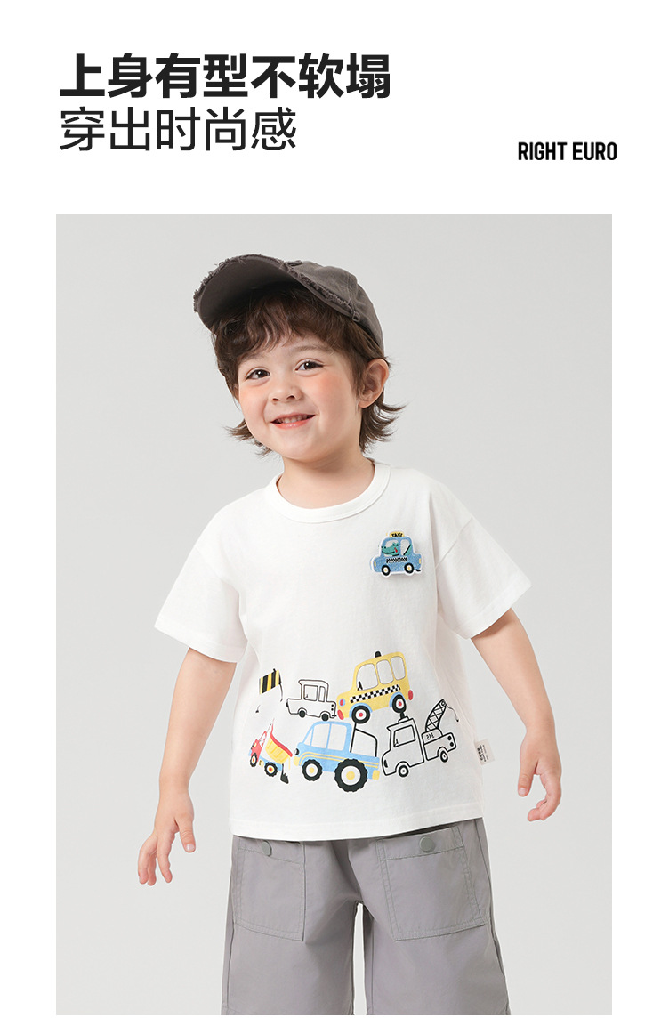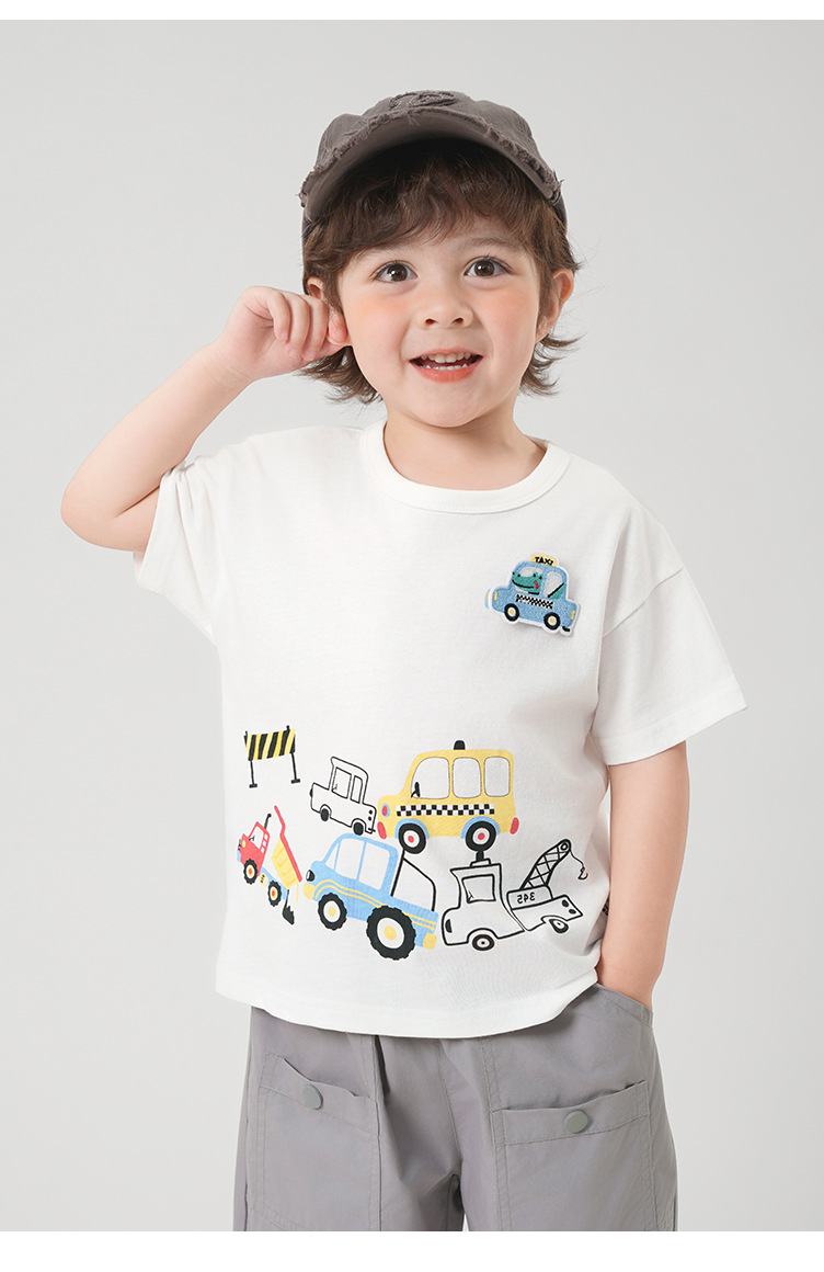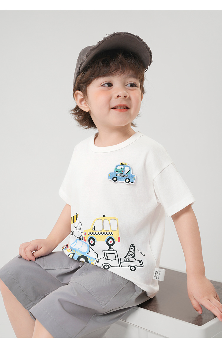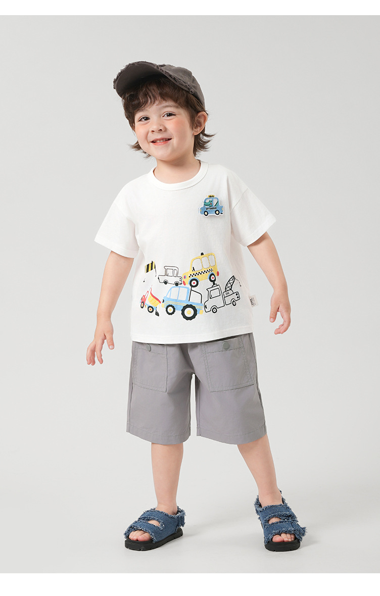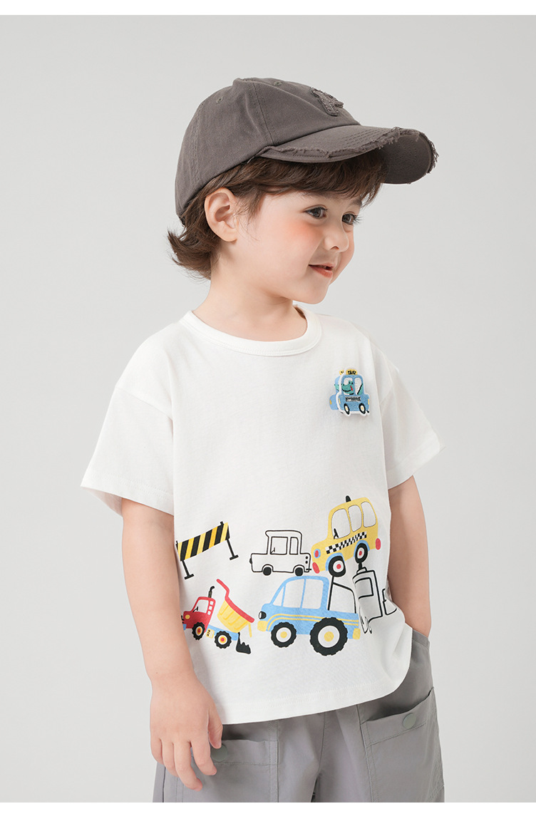 어린이 인쇄 반팔 티셔츠 아기의 탄성 라운드 넥 톱 2025 여름 어린이를위한 새로운 항균 티셔츠스토어 가기