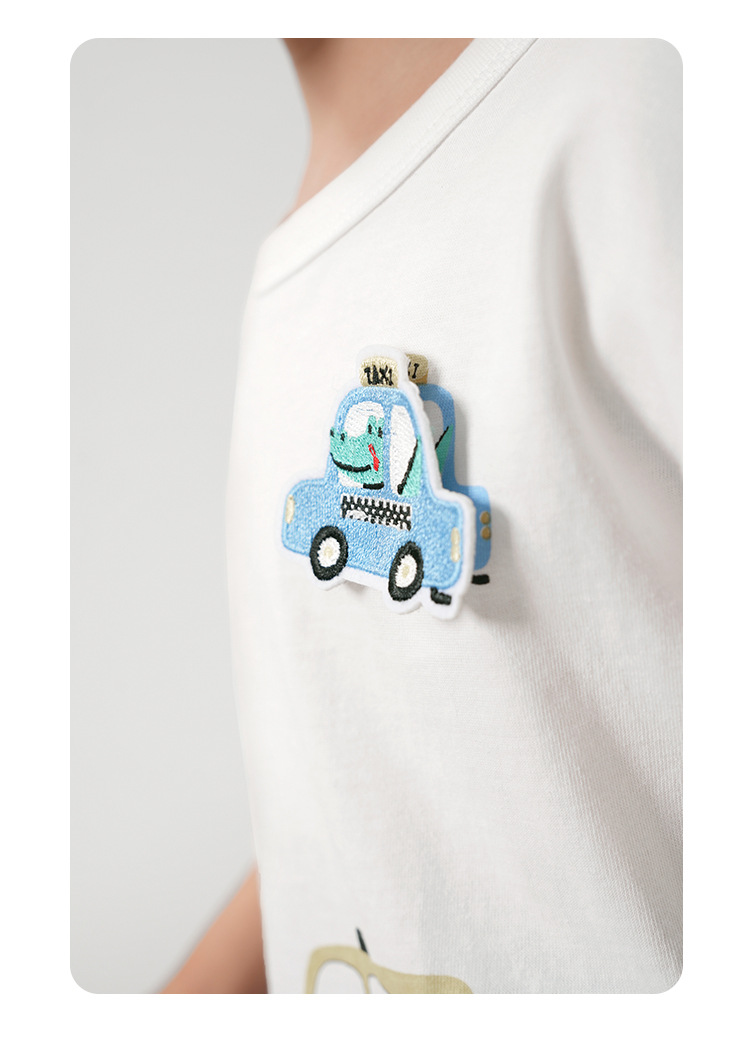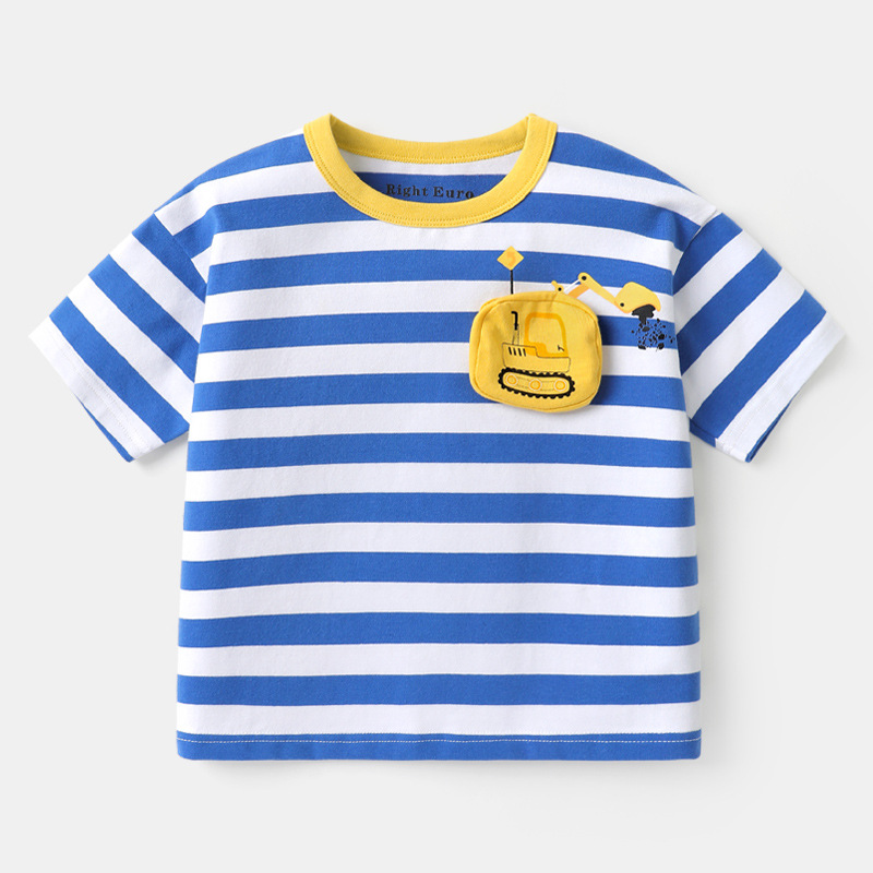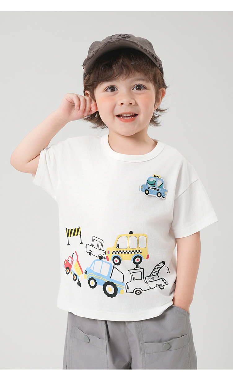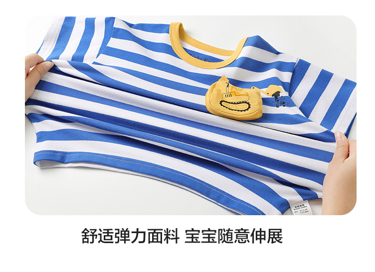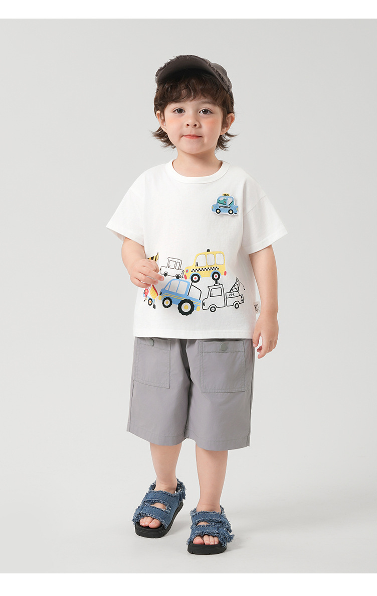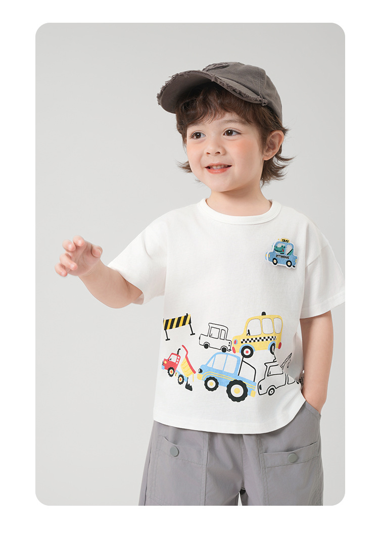 어린이 인쇄 반팔 티셔츠 아기의 탄성 라운드 넥 톱 2025 여름 어린이를위한 새로운 항균 티셔츠스토어 가기