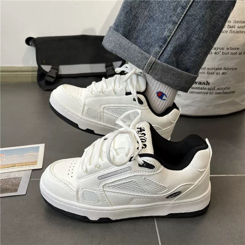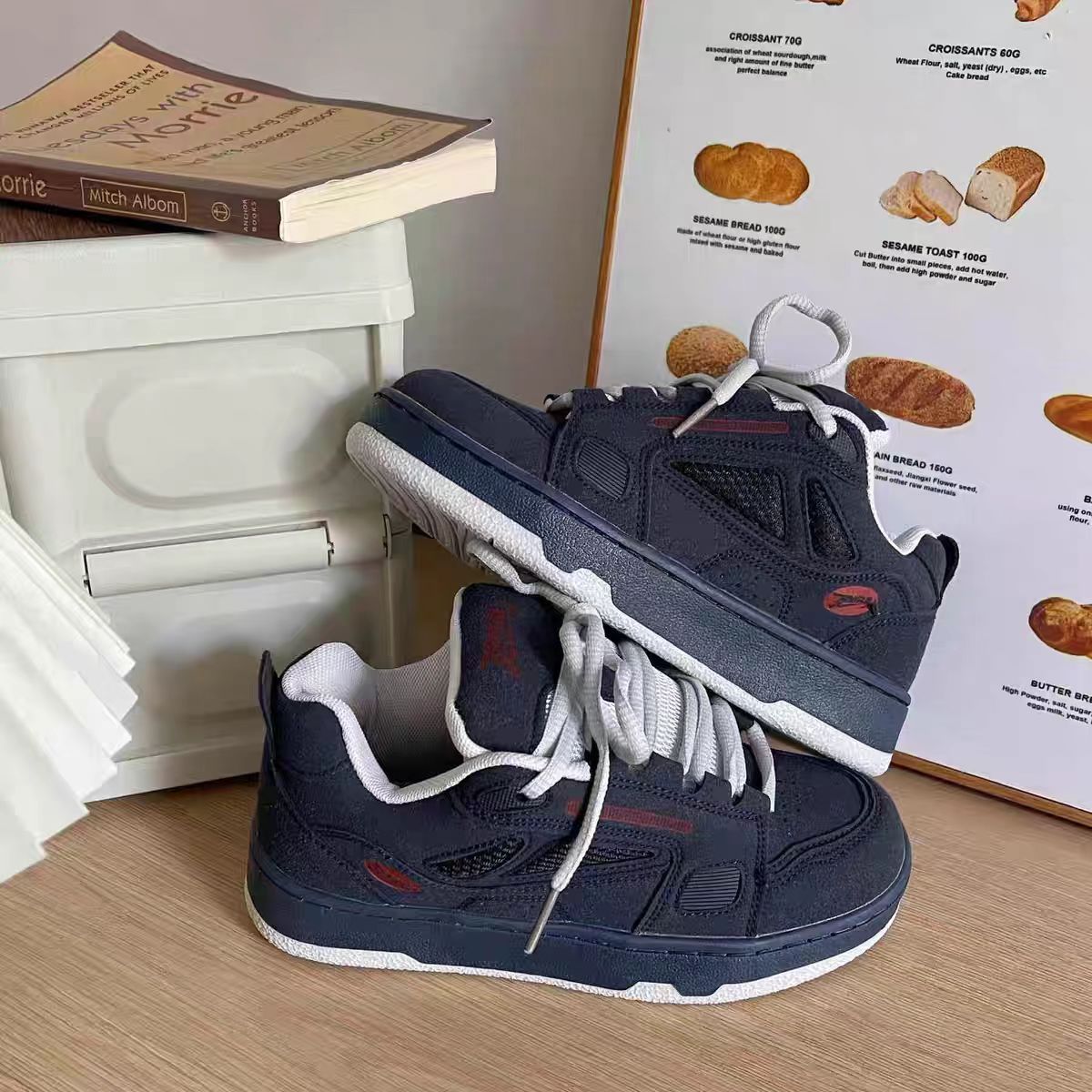 남성과 여성을위한 틈새 검은 빵 신발 빈티지 화이트 신발 두꺼운 밑창 캐주얼 보드 신발, 커플을위한 트렌디 한 스포츠 신발스토어 가기