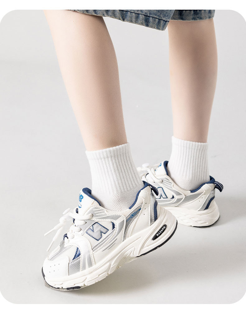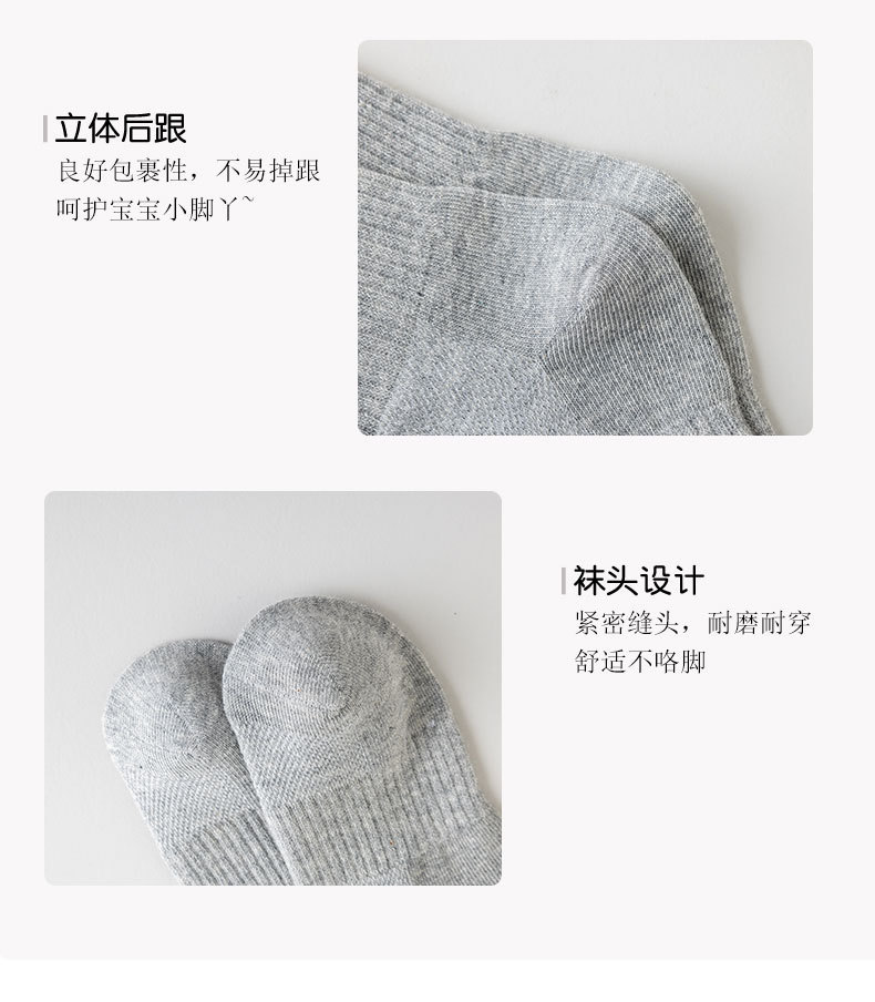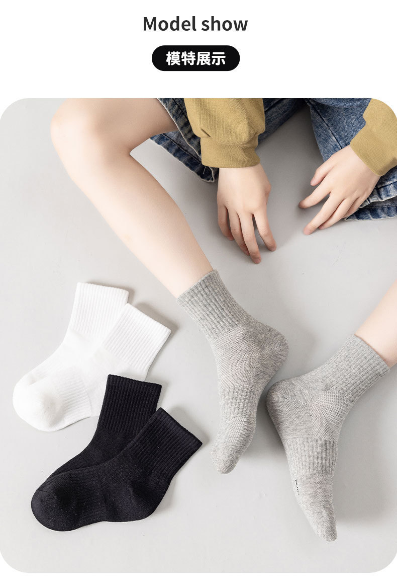 • 통기성 어린이 양말 - 흰색 + 회색 + 검정색