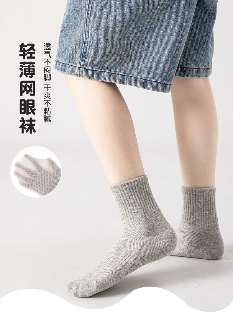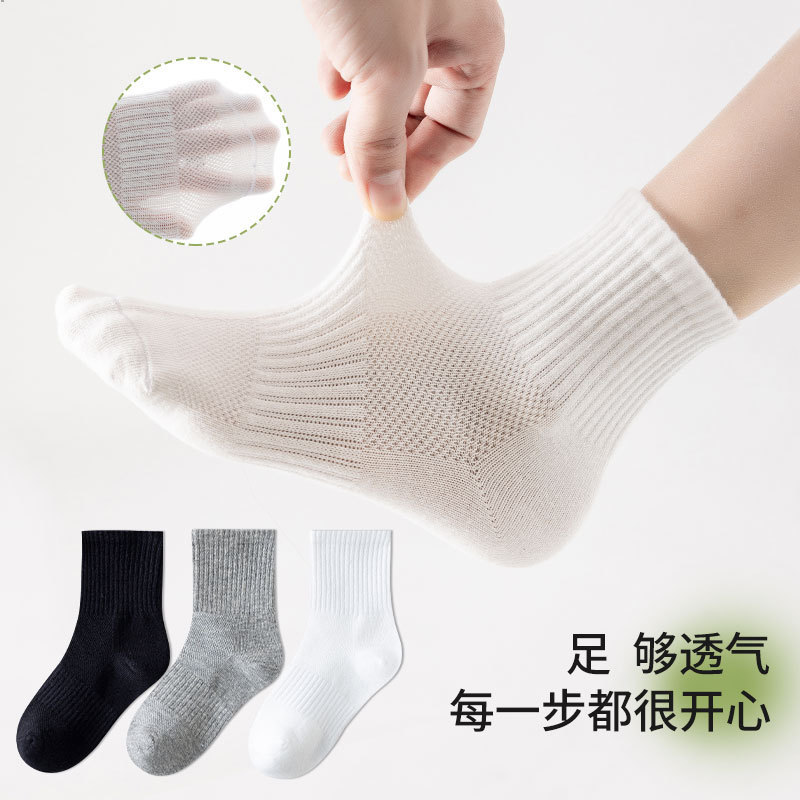 어린이 양말 여름 얇은 면 양말 소년과 소녀 흰색 학생 양말 봄과 가을 흰색 양말 통기성 메쉬 양말
