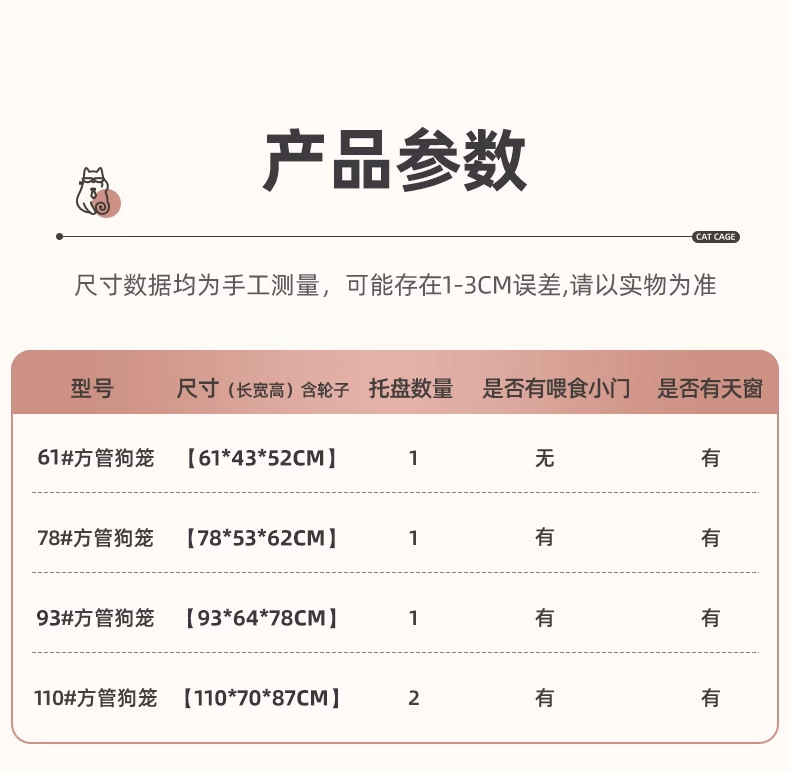 • [사각형 튜브 모델] 110cm 흰색 [먹이주기 창 있음] (45kg마리 이하의 반려동물에게 적합)