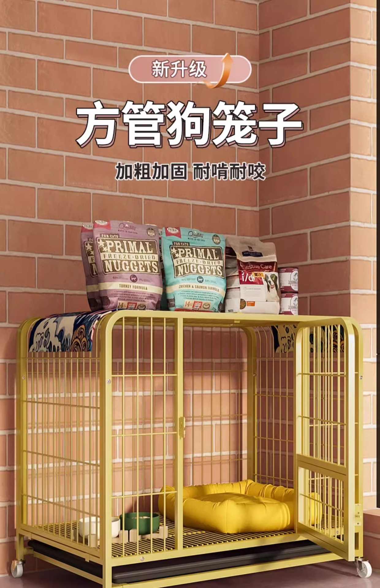 • [사각형 튜브 모델] 78cm 노란색 [먹이주기 창 있음] (15kg마리 이내 애완동물용)