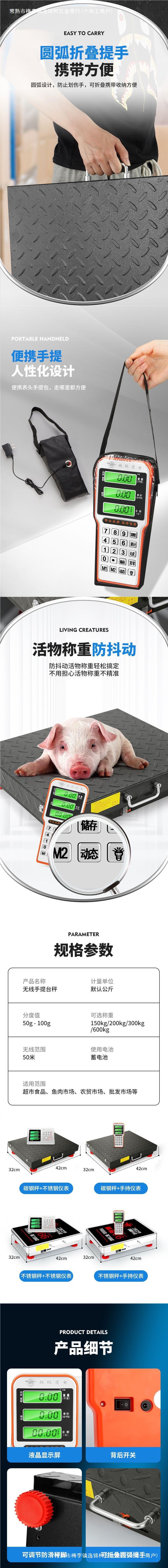 새로운 Dahongying 무선 분리 전자 가늠자 150kg 휴대용 휴대용 상업적인 전자 규모 600kg 규모스토어 가기