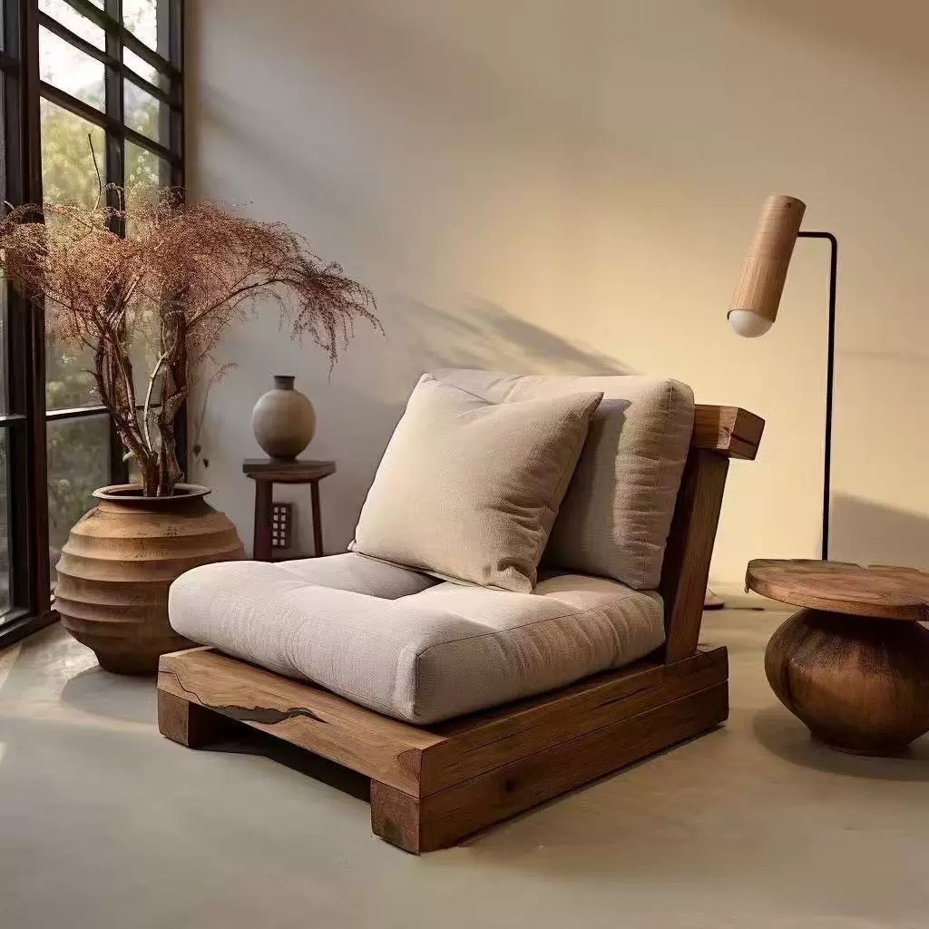 오래된 느릅 나무 소파 의자 새로운 중국 스타일 거실 싱글 등받이 소파 의자 솔리드 우드 소파 가구 등받이 의자