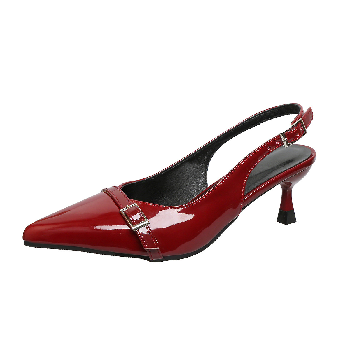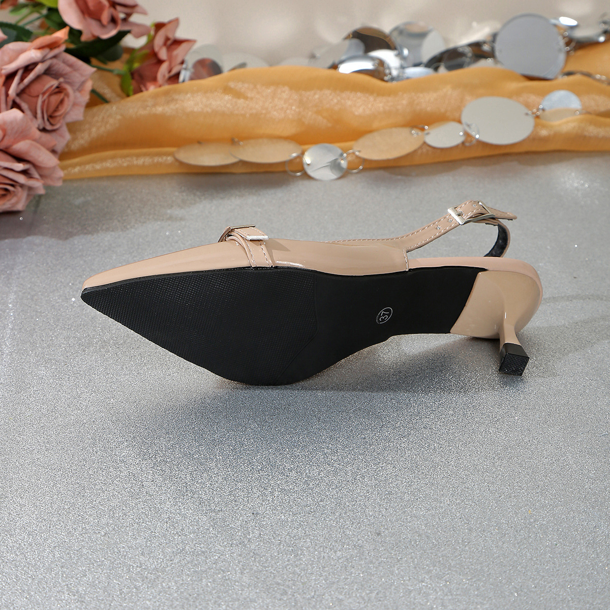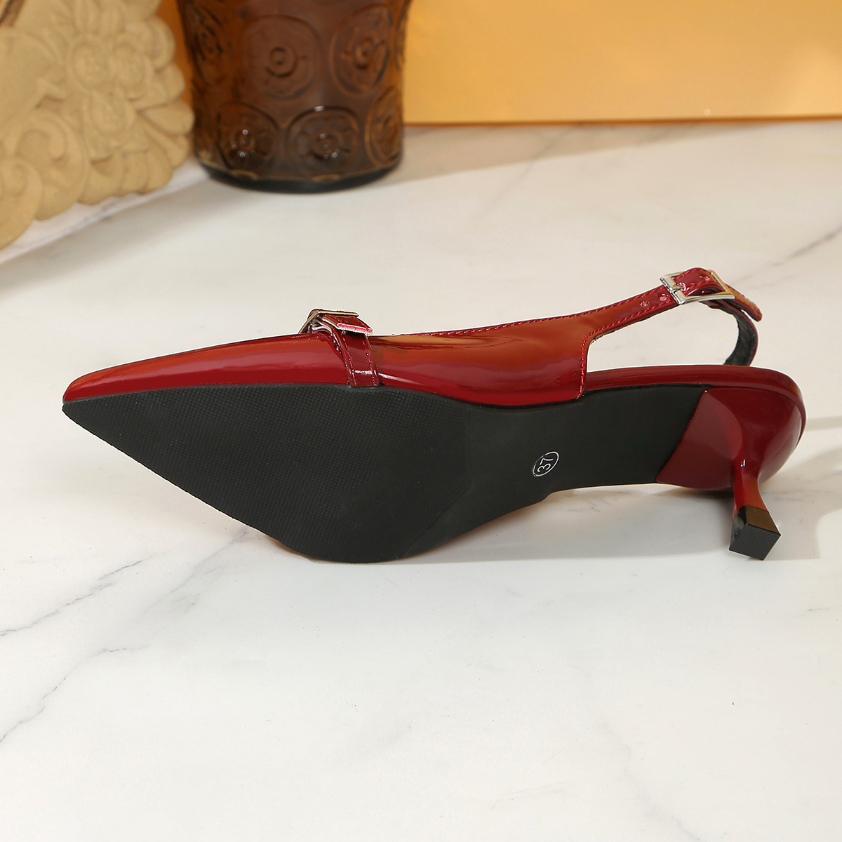 여성을 위한 크로스보더 인기 싱글 슈즈, 포인티드 토 페이턴트 가죽 미드 힐 토 샌들, 여성을 위한 여름 신작 복고풍 스타일 스틸레토 힐