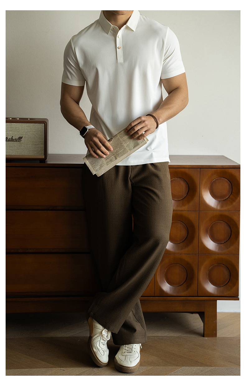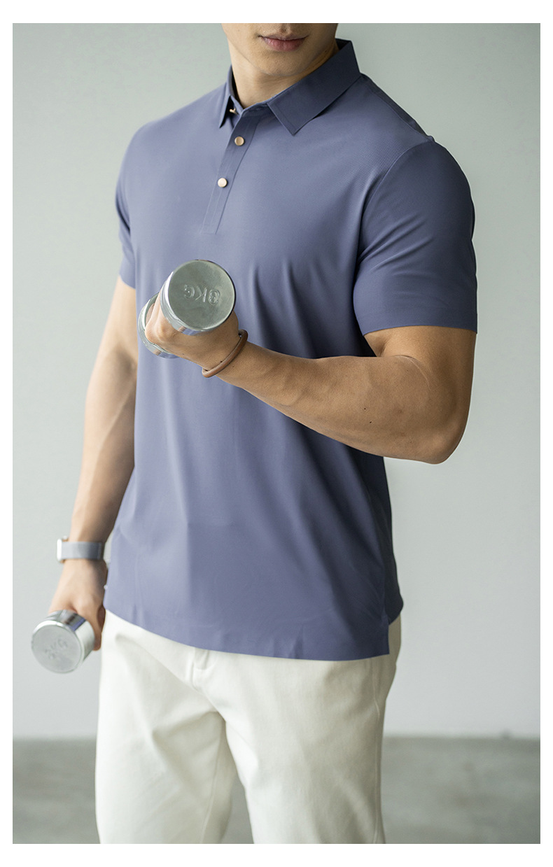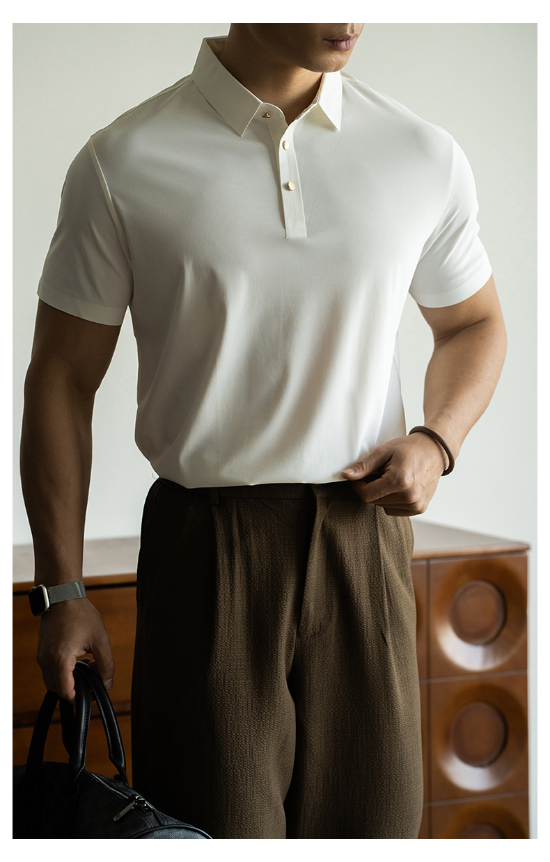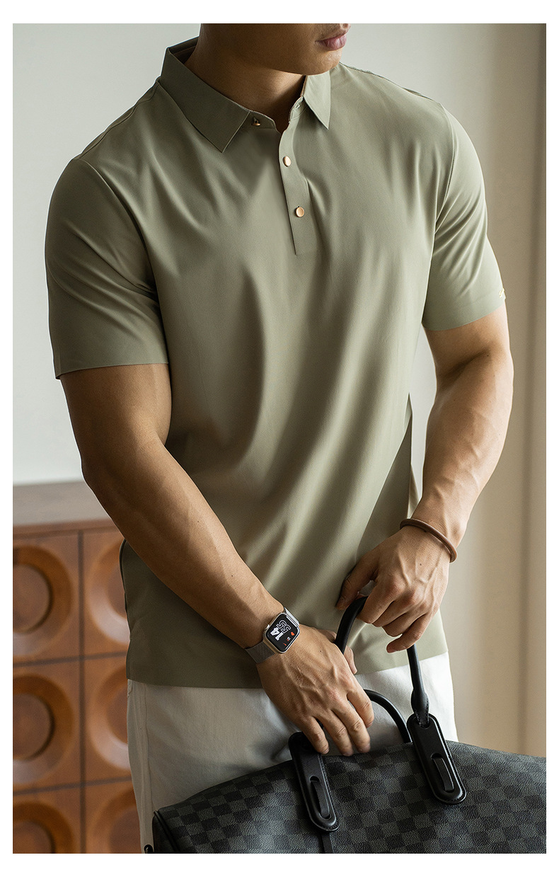 [원활한 프레스 접착제] 아이스 실크 퀵 드라이 쿨 반팔 폴로 셔츠 남성용 라이트 비즈니스 캐주얼 옷깃 티셔츠 폴 셔츠